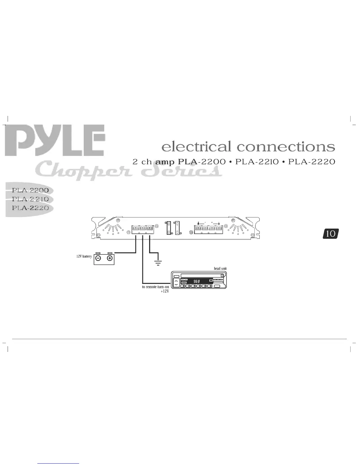 Pyle PLA2200 - Electrical Connections Guide; 2-Channel Models Electrical Connections