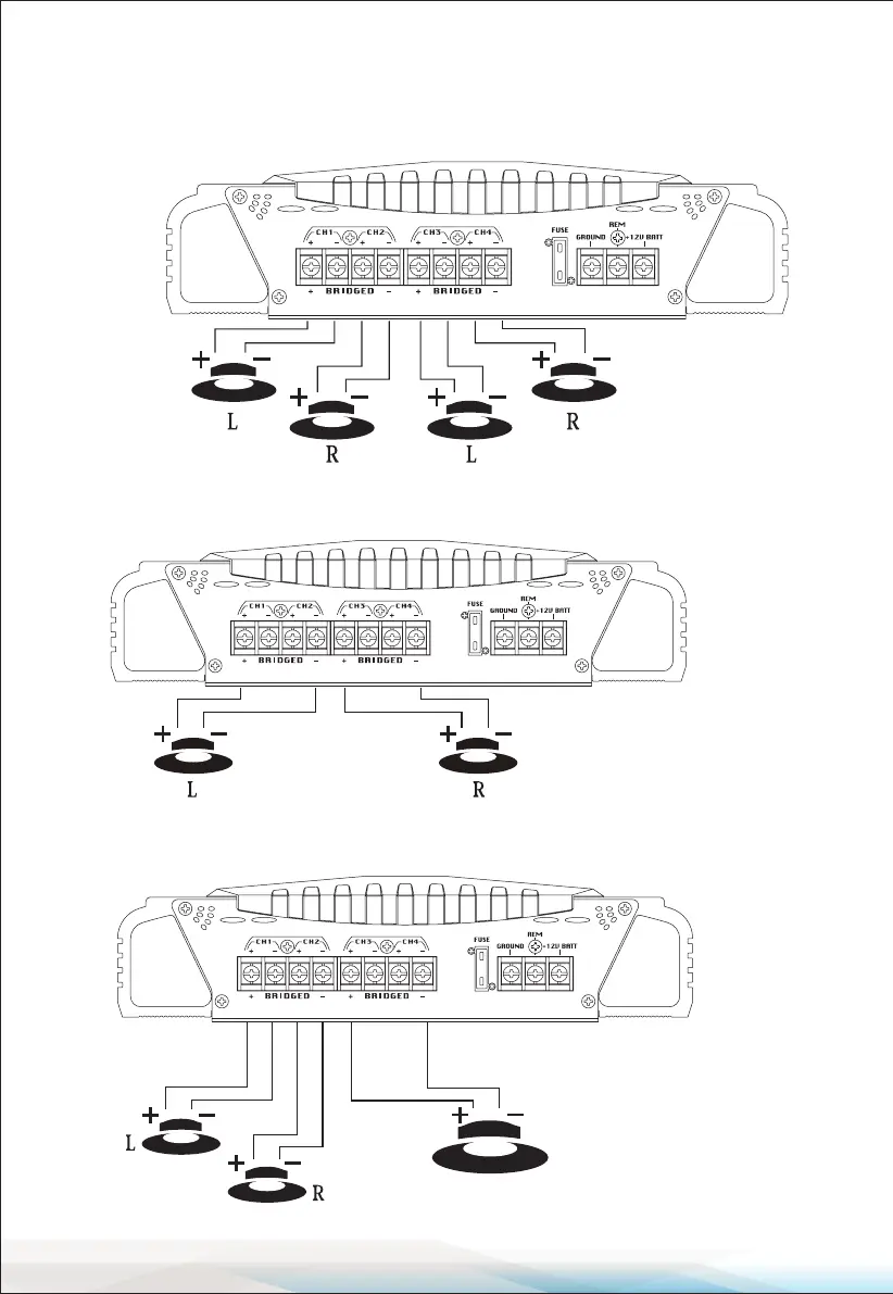4 CH Stereo Output Mode with Mono Bridged Subwoofer Output