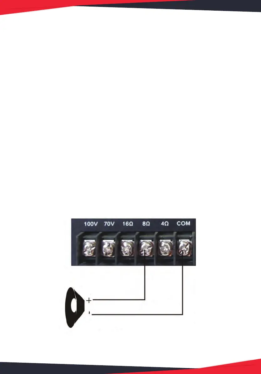 NOTE: Connect the speaker (+) to the amplier’s 4-Ohm, 8-Ohm or 16-Ohm
