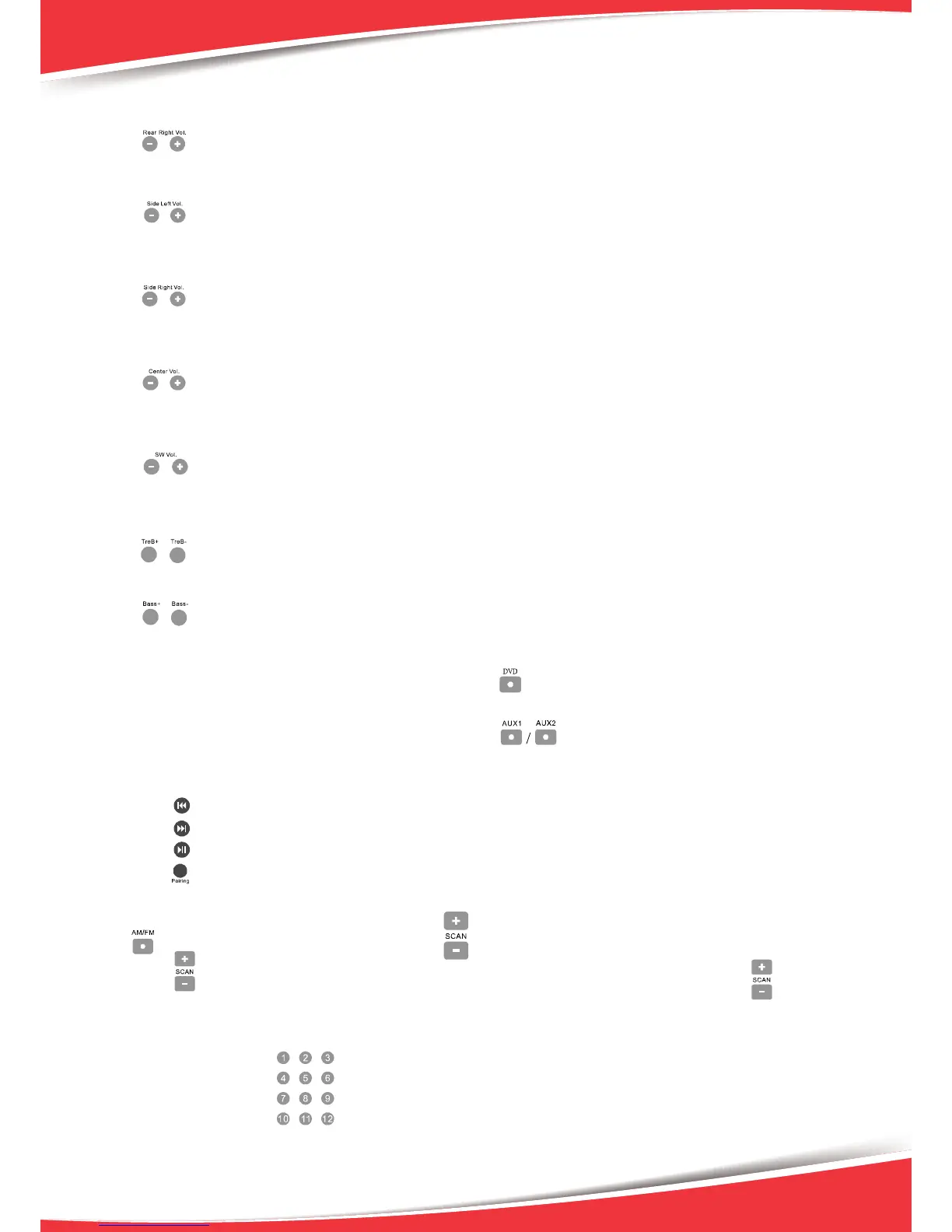 Press key on the remote control, screen display the SL volume, press “-ADJUST+” key to adjust