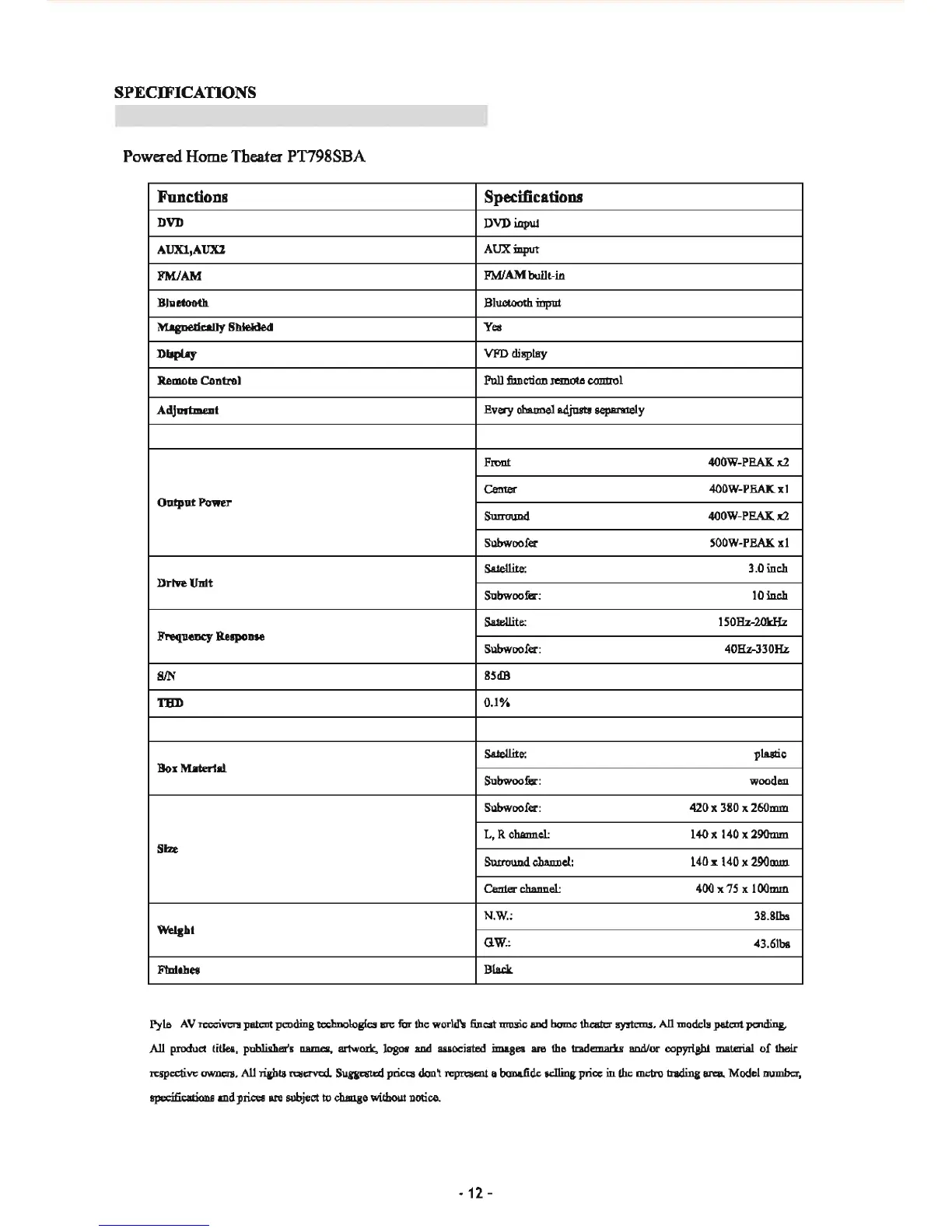 Powered Home Theater PT798SBA
