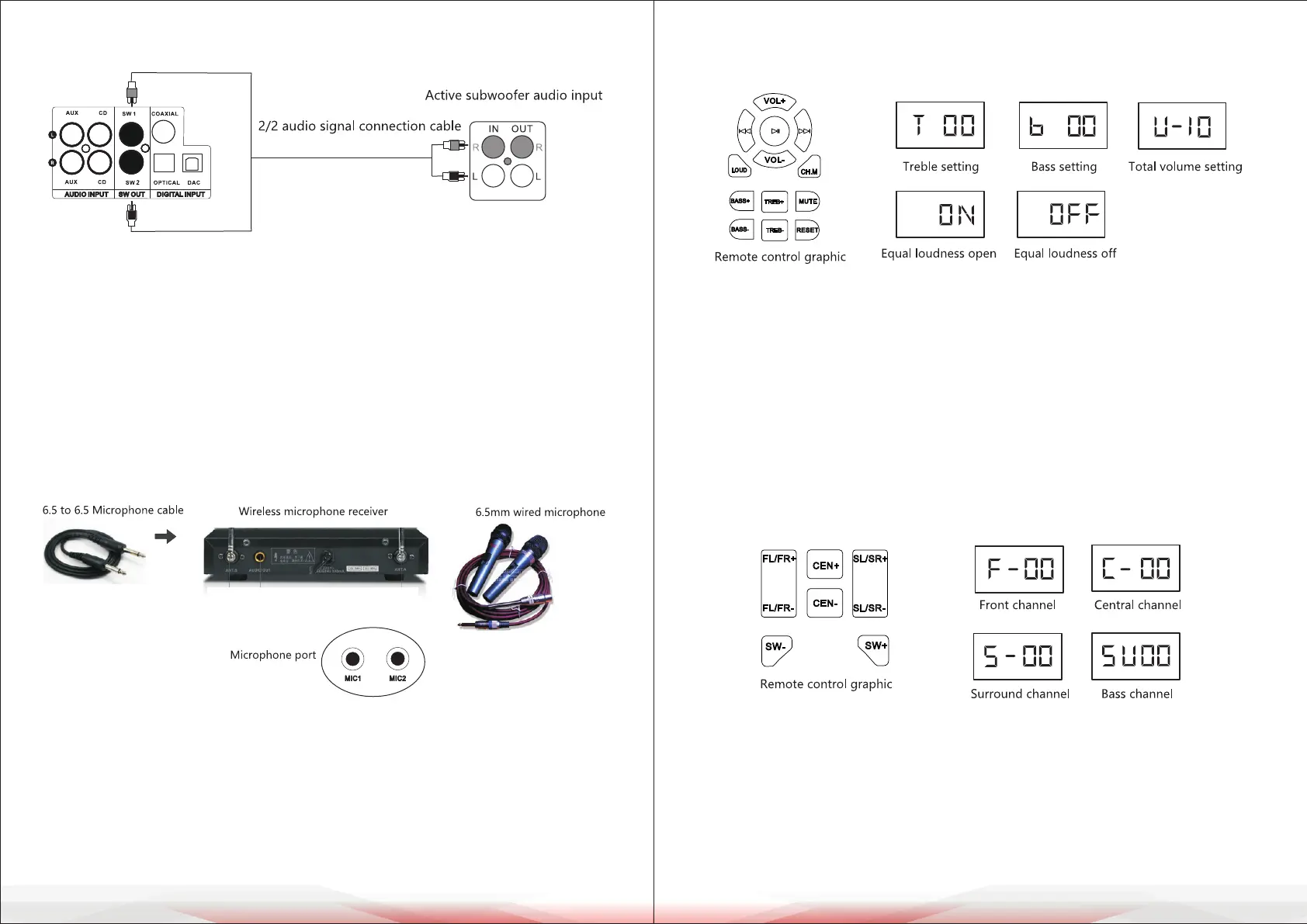 1. The system supports both wired and wireless microphone connections.