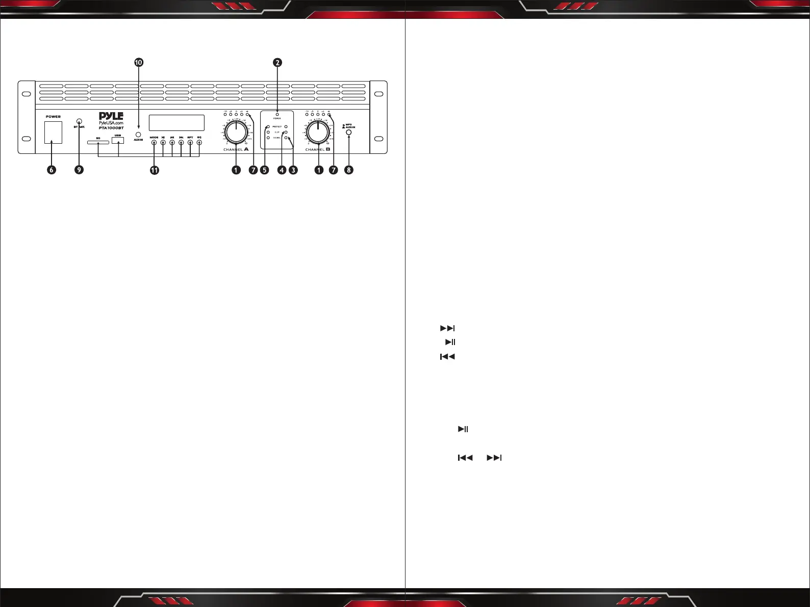 10. AUX INPUT JACKS: Connect AUX input to these jacks.