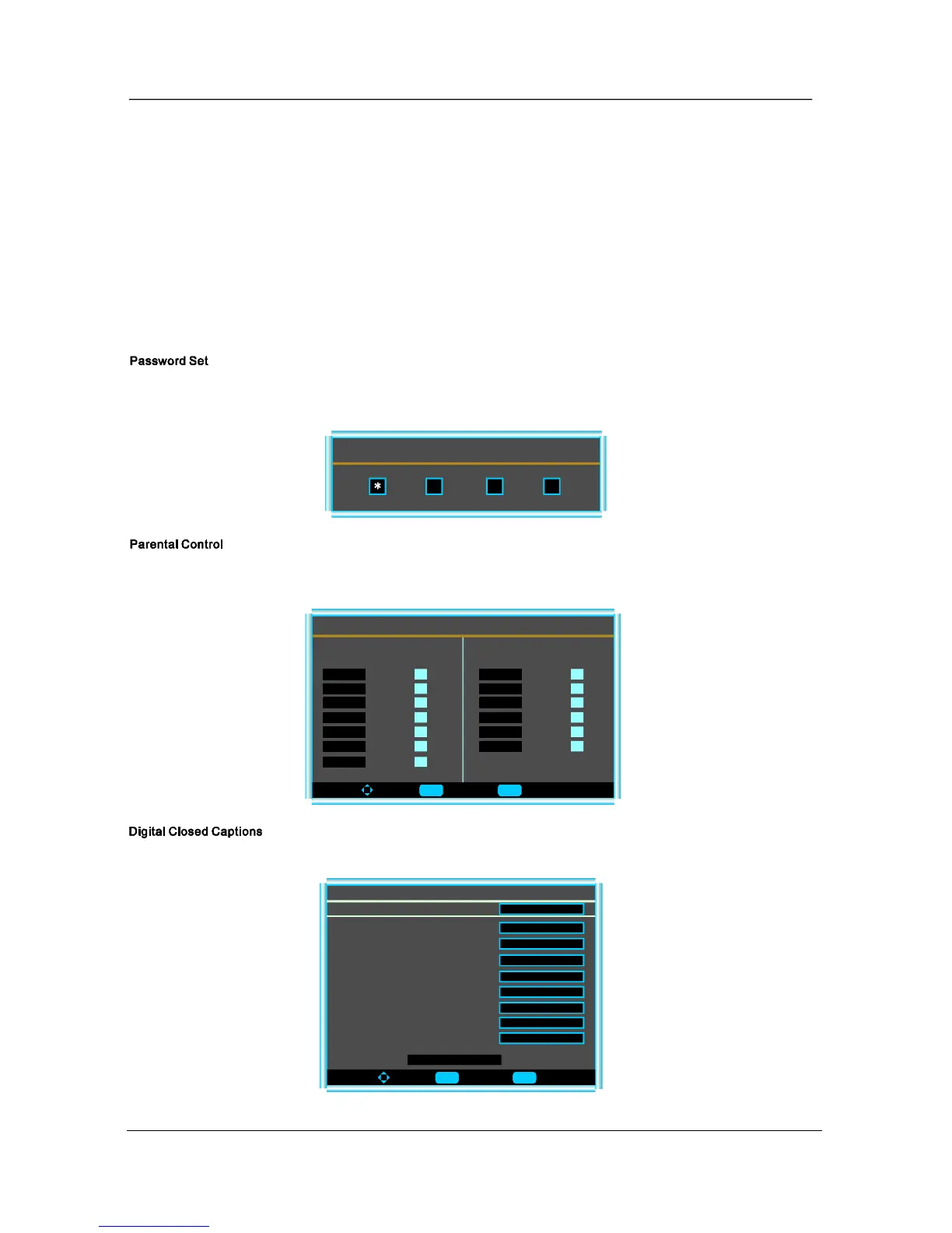 Thisitemallowsyoutosettheclosedcaption,andpressEntertoenterClosedCaptionOptionsmenuasbelow: