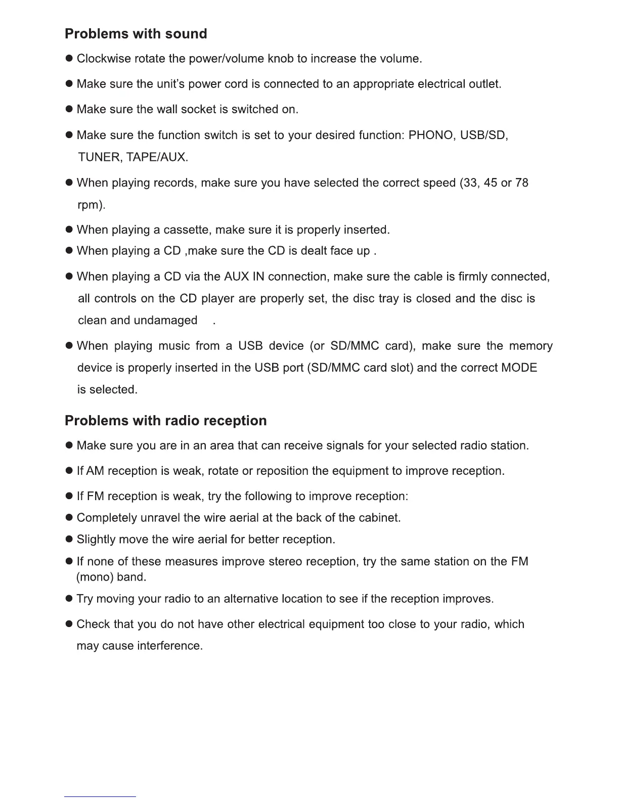Pyle PTTCDS7U - Sound and Radio Reception Issues