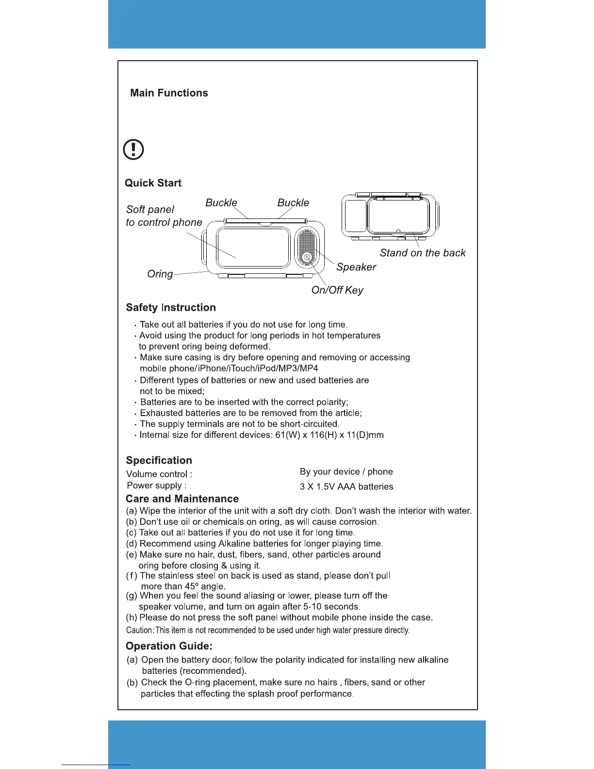 Universal Waterproof iPod, MP3 Player & Smartphone Portable Speaker Case