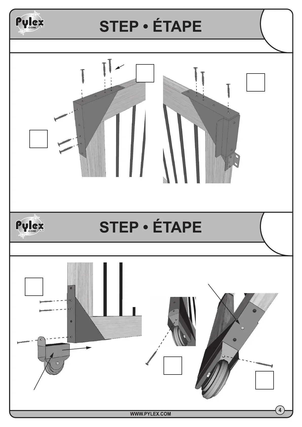 INSTALLATION OF WHEEL SUPPORTS : LOWER LEFT CORNER - INSTALLATION DES SUPPORTS POUR ROUES : COIN INFÉRIEUR GAUCHE
