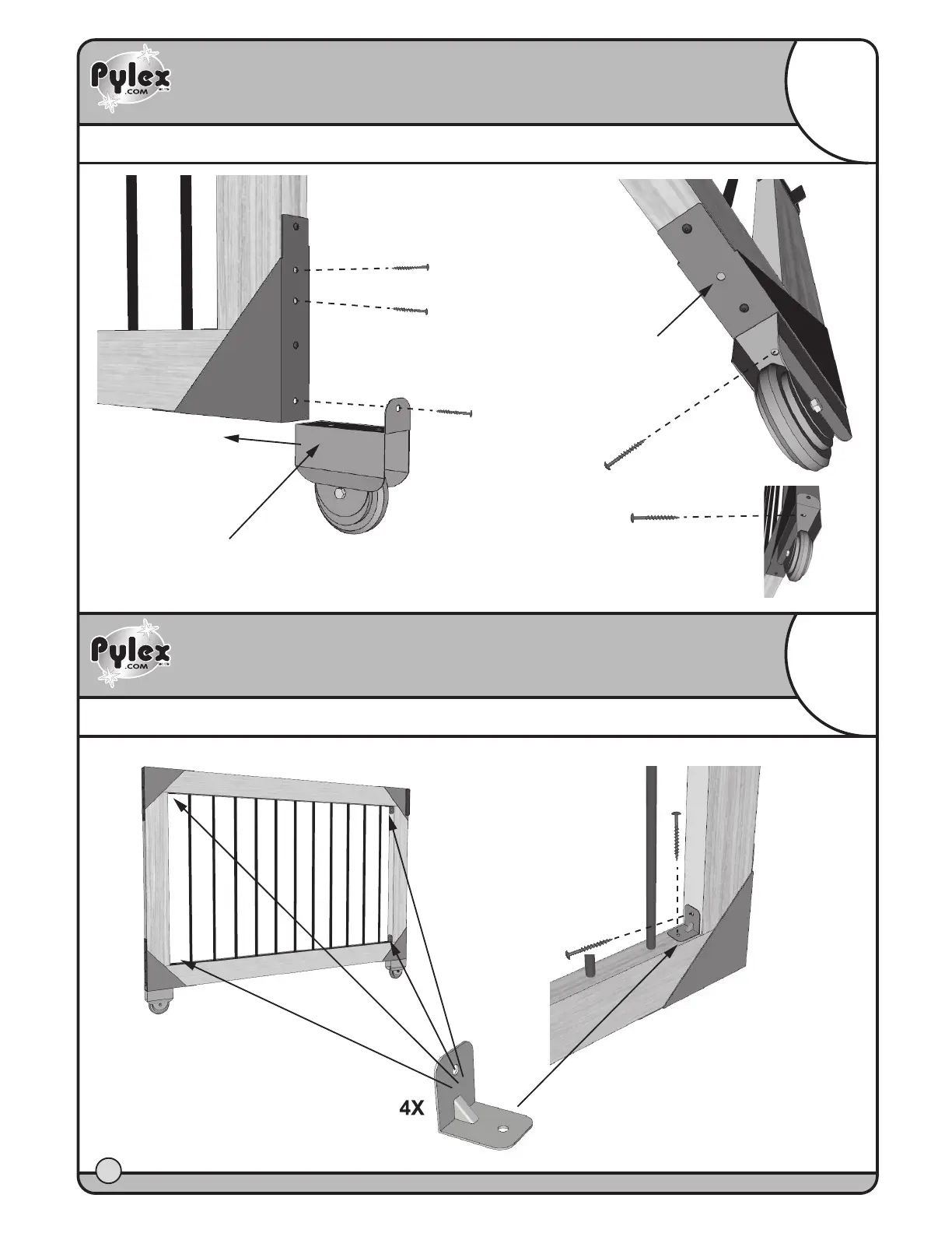 INSTALLATION OF WHEEL SUPPORTS LOWER RIGHT CORNER - INSTALLATION DES SUPPORTS POUR ROUES COIN SUPÉRIEUR DROIT