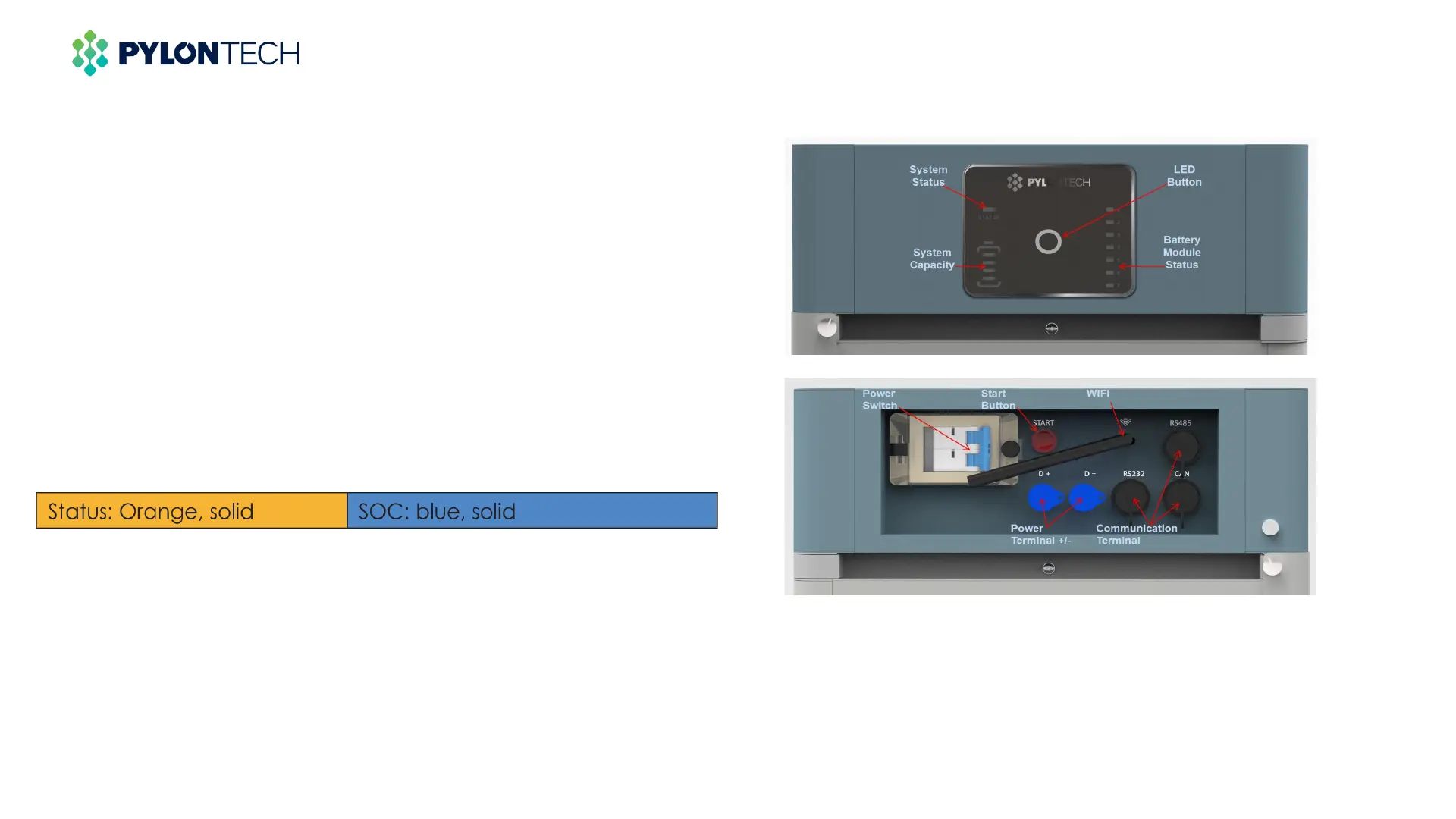 Blue and fast flashing, then battery will black start to support inverter for 10mins to establish communication.