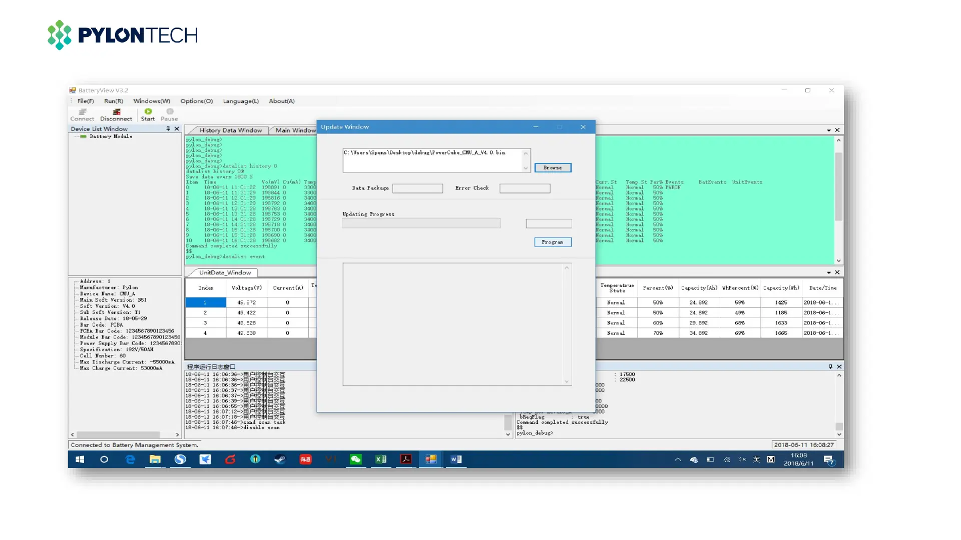 Connect to Battery View Option BMS Update Browse firmware Program till 100%