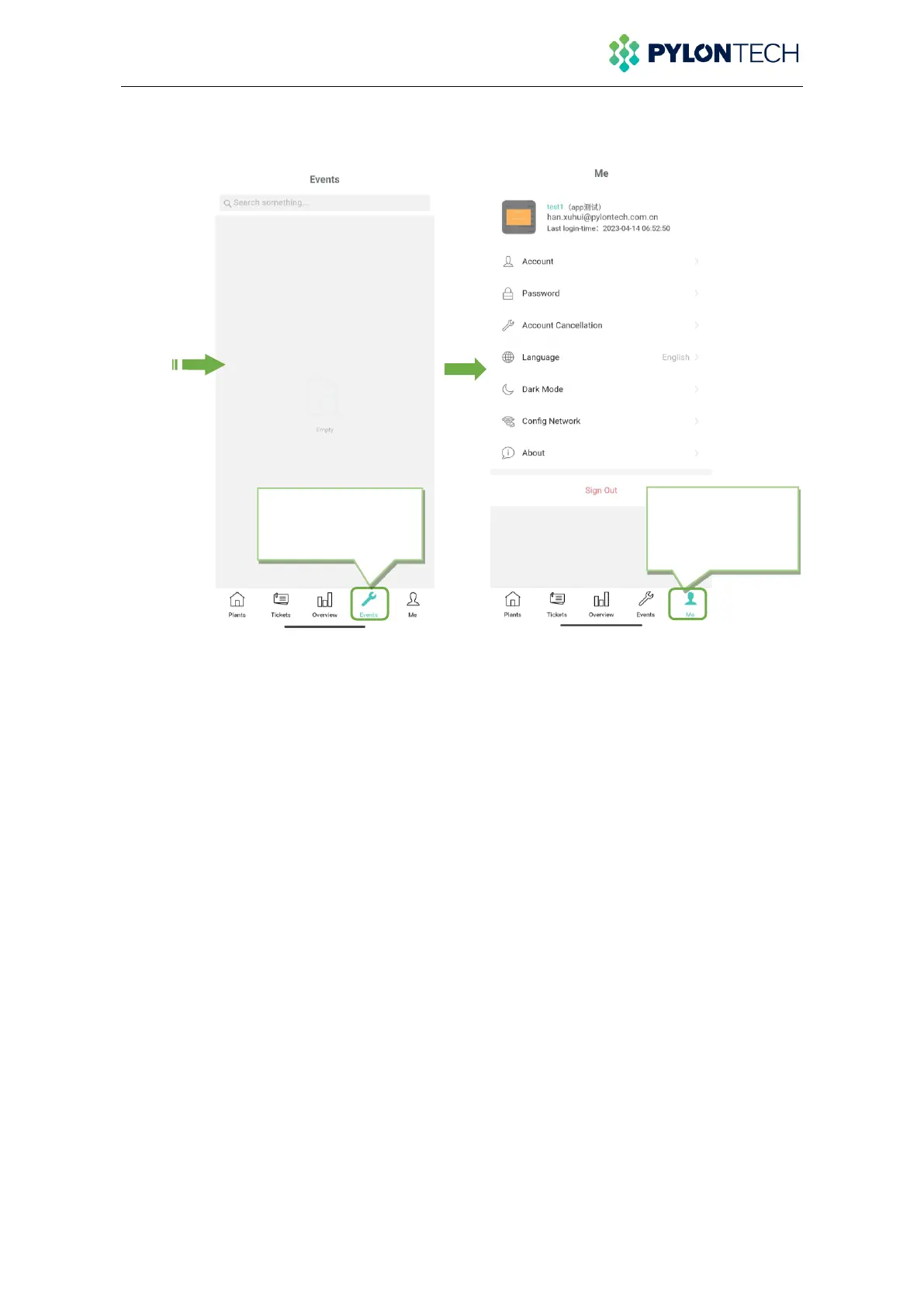 4. Select "Events" to view the alarms or faults that the system detects when the battery is abnormal.