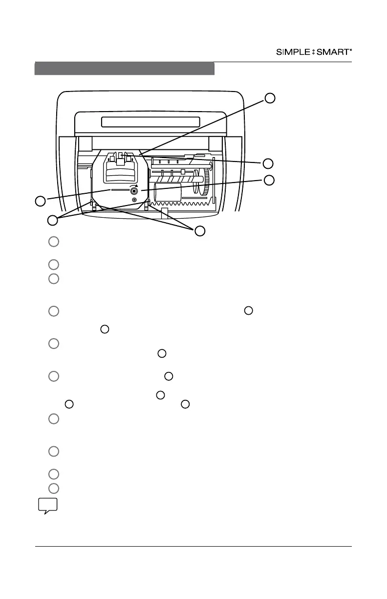 du support. Réinstallez la cartouche de ruban et suivez les étapes 1 à 7 jusqu’à ce que l’impression de l’horodateur soit