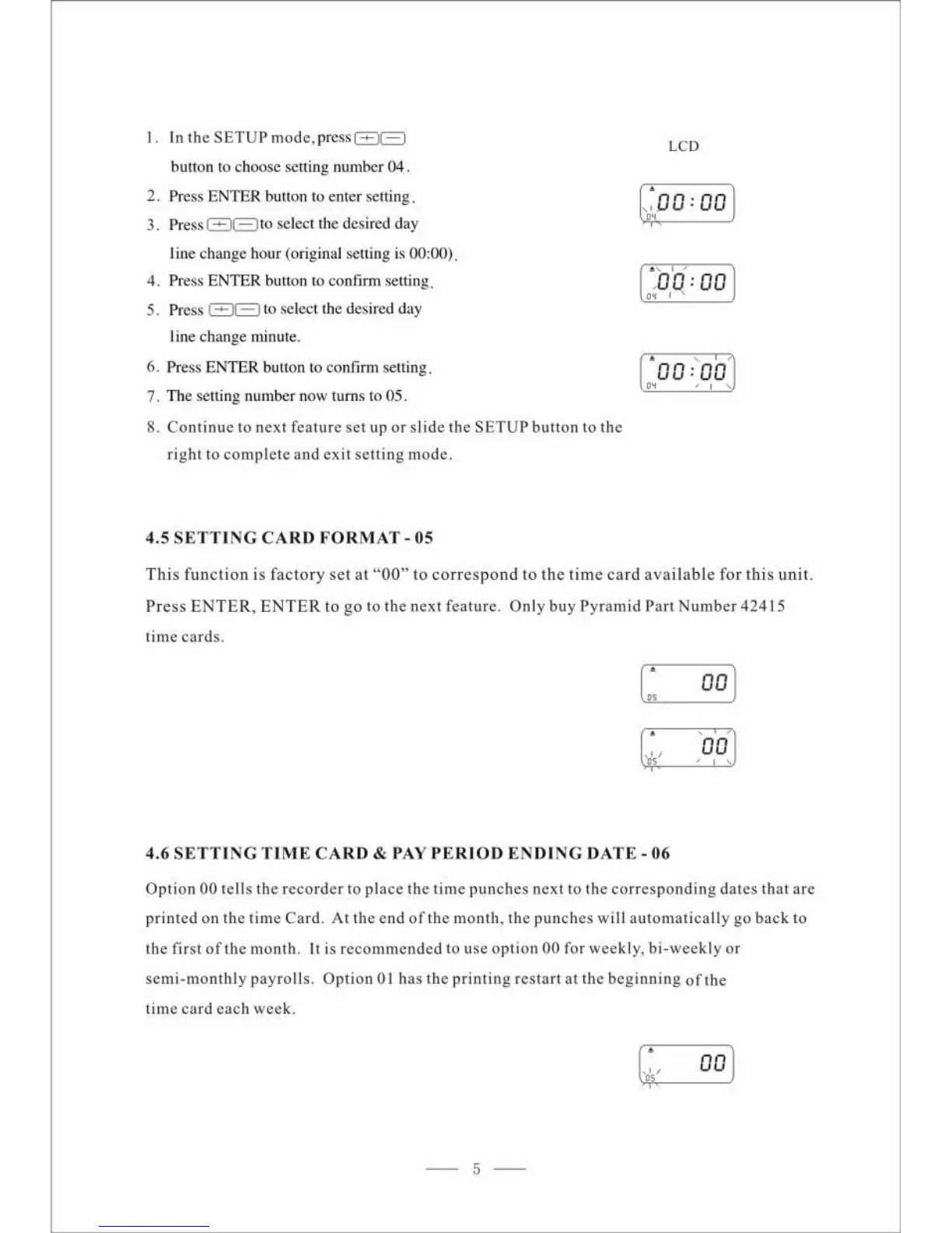 Pyramid 2600 - Setting Card Format (05); Setting Time Card & Pay Period Ending Date (06)