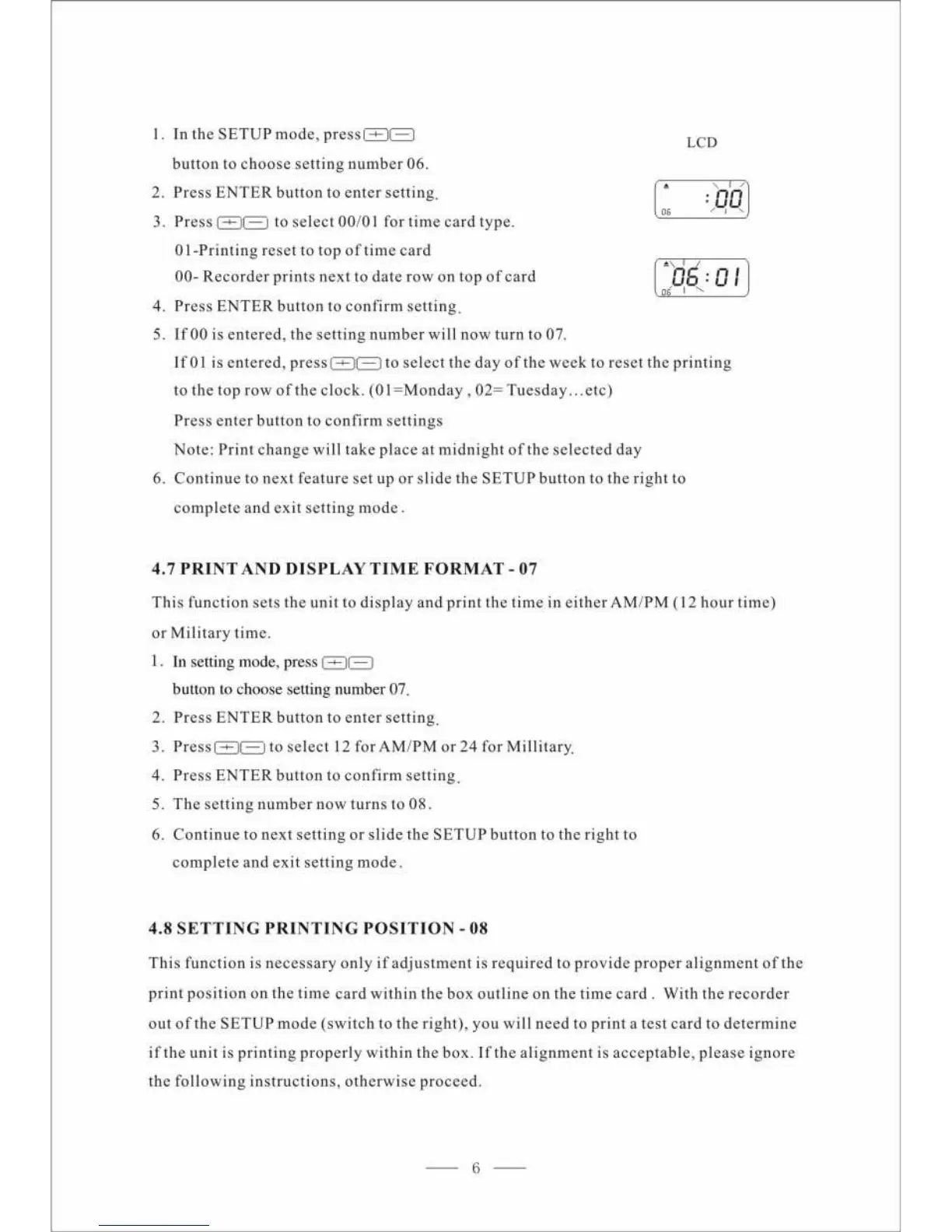 Pyramid 2600 - Print and Display Time Format (07); Setting Printing Position (08)