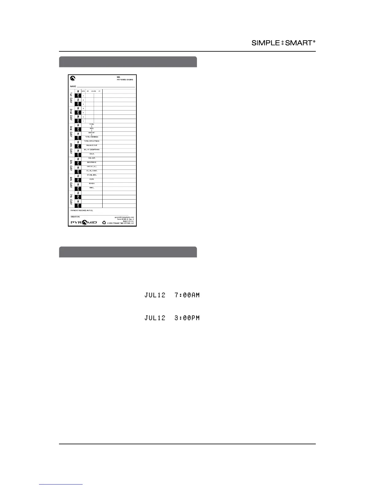 La tarjeta de registro de tiempo (#35100-10 o 35100-10S) se usa para períodos