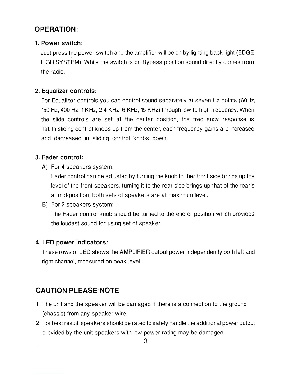 Pyramid 402VL - Operation Guide; Power Switch Operation; Equalizer Control Usage; Fader Control Adjustment
