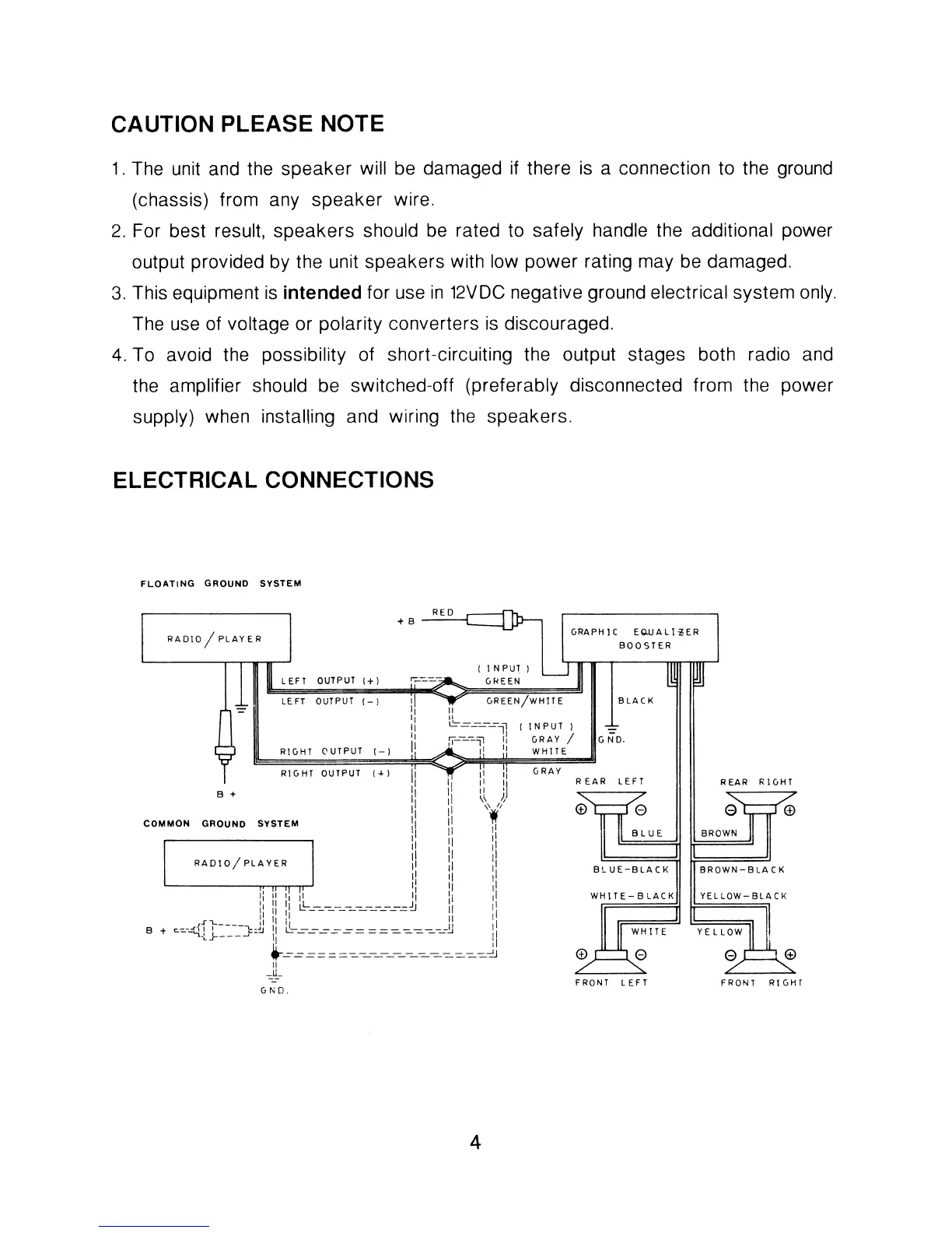 Pyramid 403G - Important Notes and Wiring; Cautionary Notes; Electrical Connections Diagram