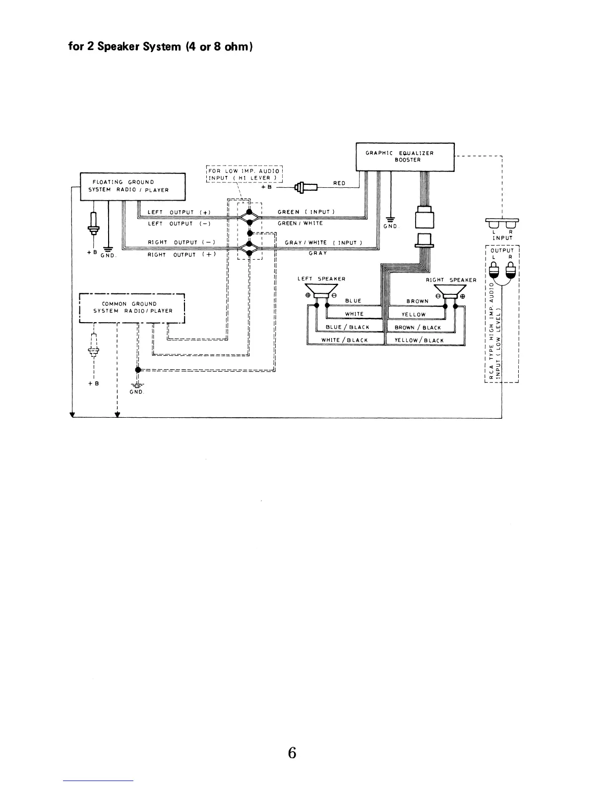 Pyramid 405VL - Electrical Connections (2 Speaker System); Floating Ground System Wiring; Common Ground System Wiring; Speaker Output Connections