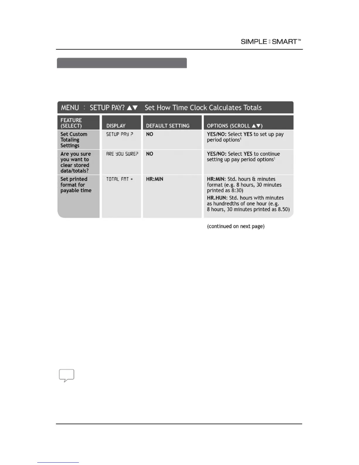 SELECTING YES IN SETUP PAY? MENU AFTER INITIAL SETUP WILL ERASE ALL STORED