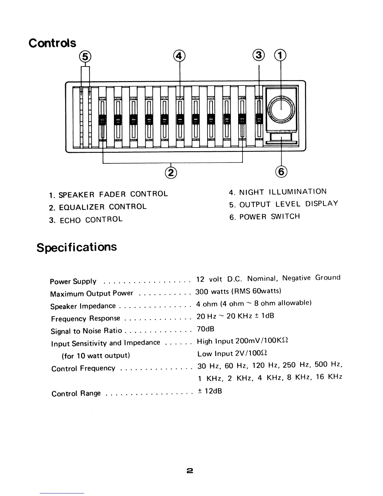 Pyramid 808 - Controls and Specifications; Speaker Fader Control; Equalizer Control; Echo Control