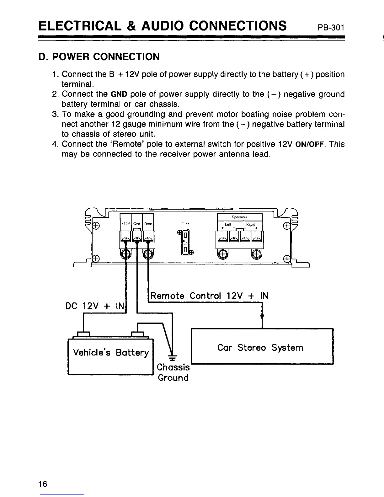 Pyramid PB-101 - Power Connection PB-301; Wiring for Power and Control