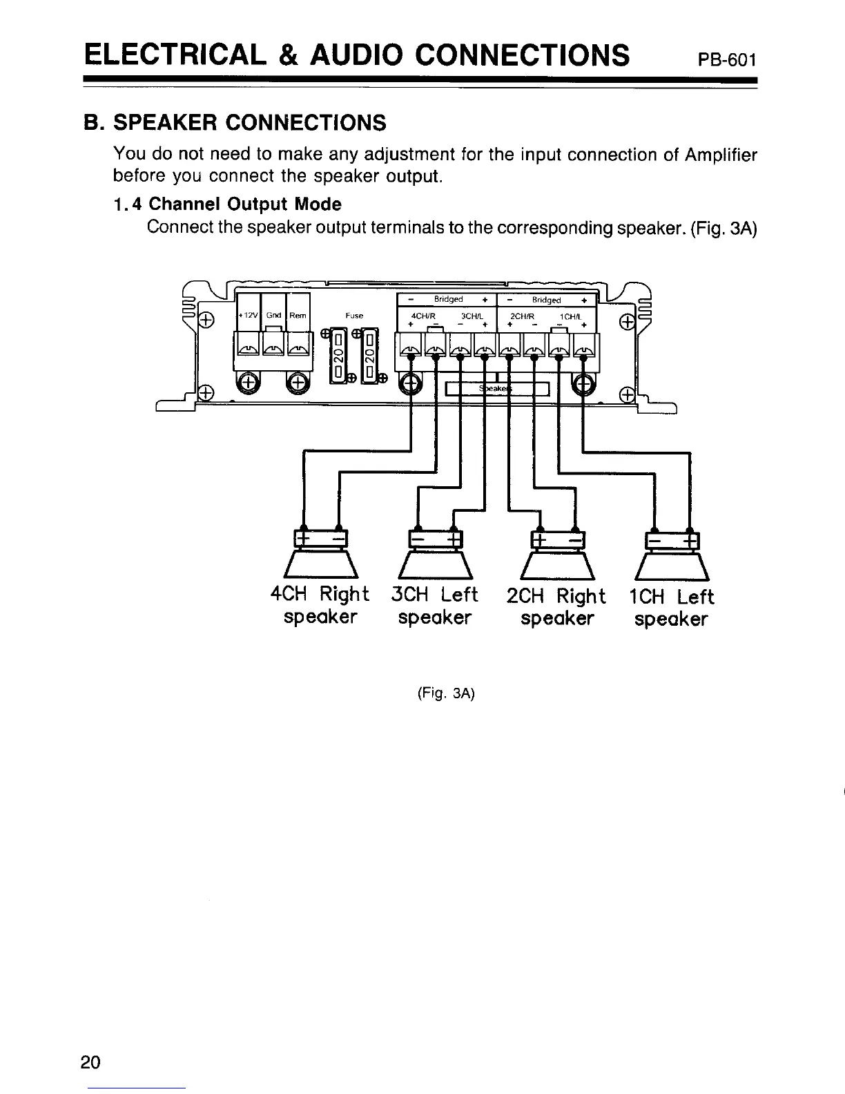 Pyramid PB-101 - Speaker Connections PB-601; 4 Channel Output Mode