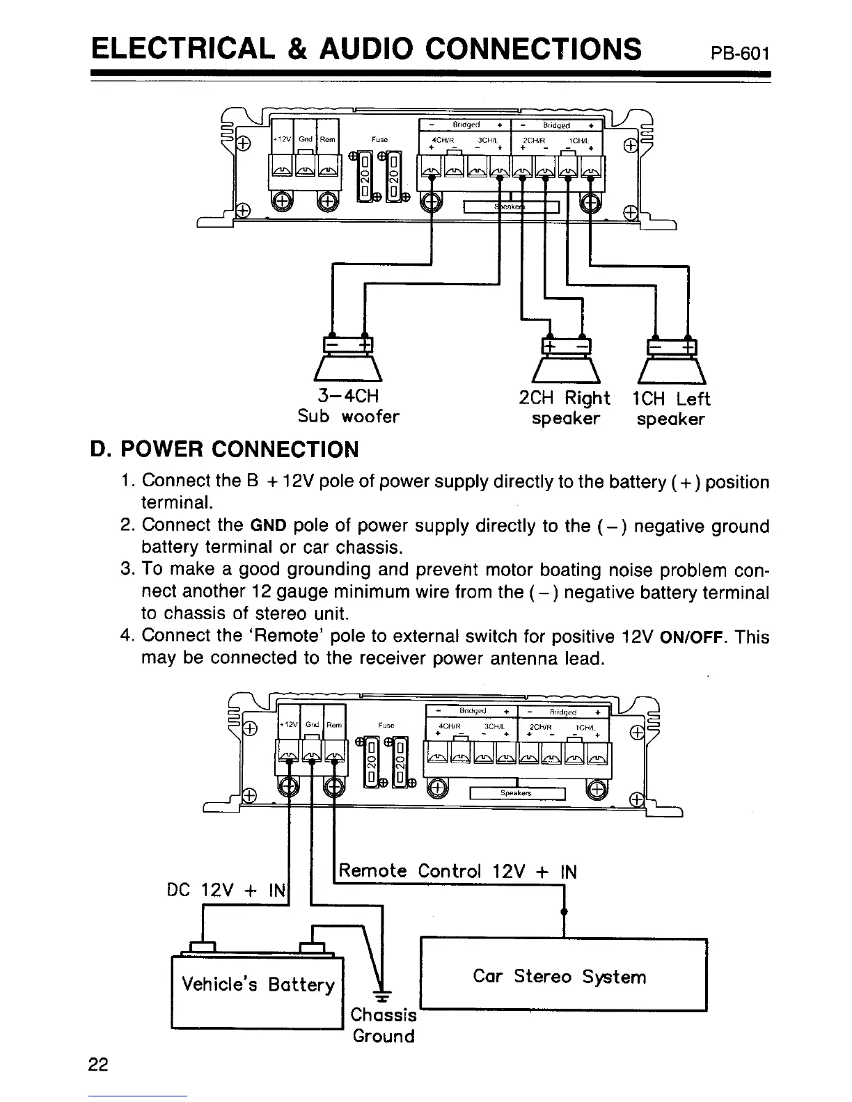 Pyramid PB-101 - Power Connection PB-601; Wiring for Power and Control