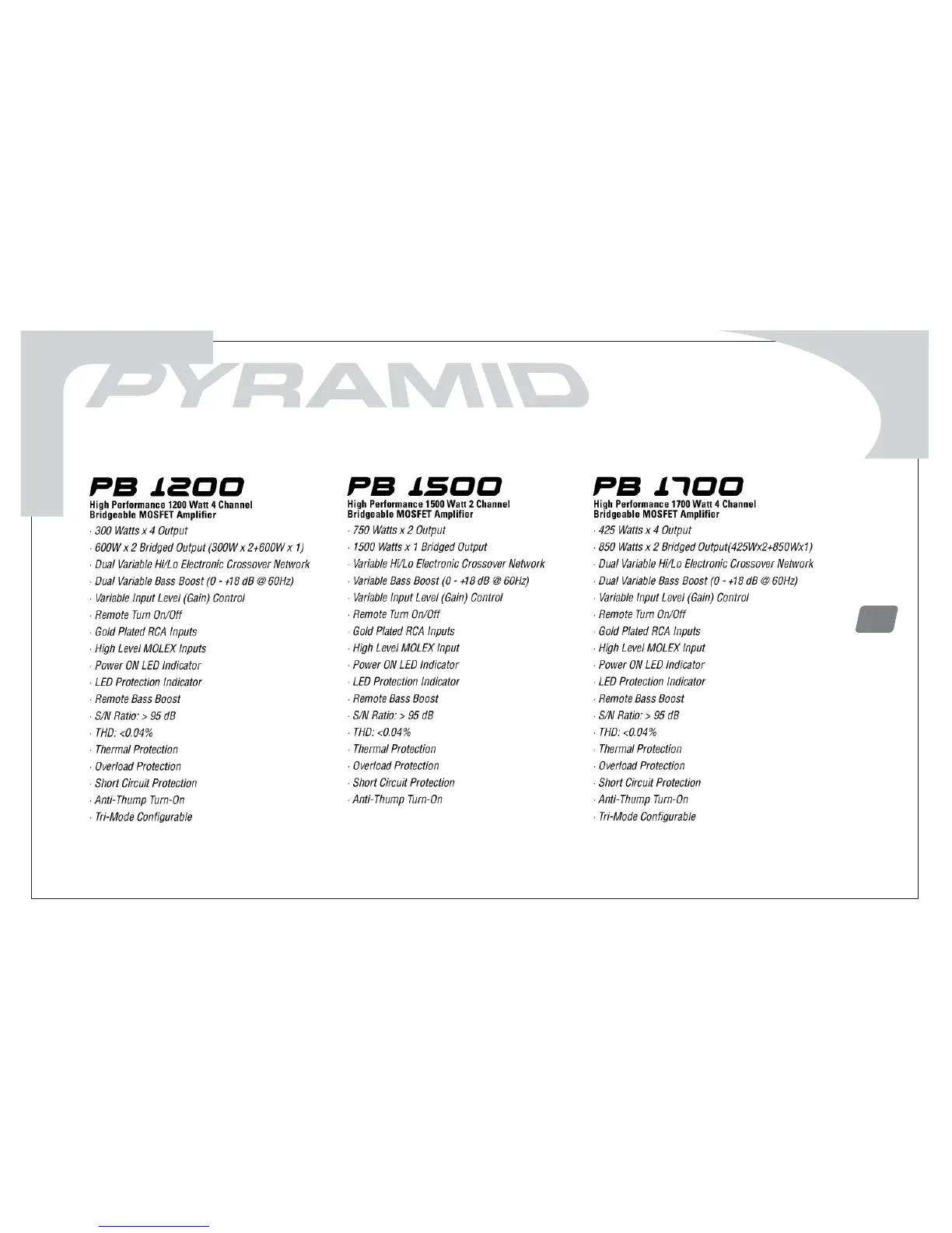 Pyramid PB1000 - PB 1200 Features; PB 1500 Features; PB 1700 Features