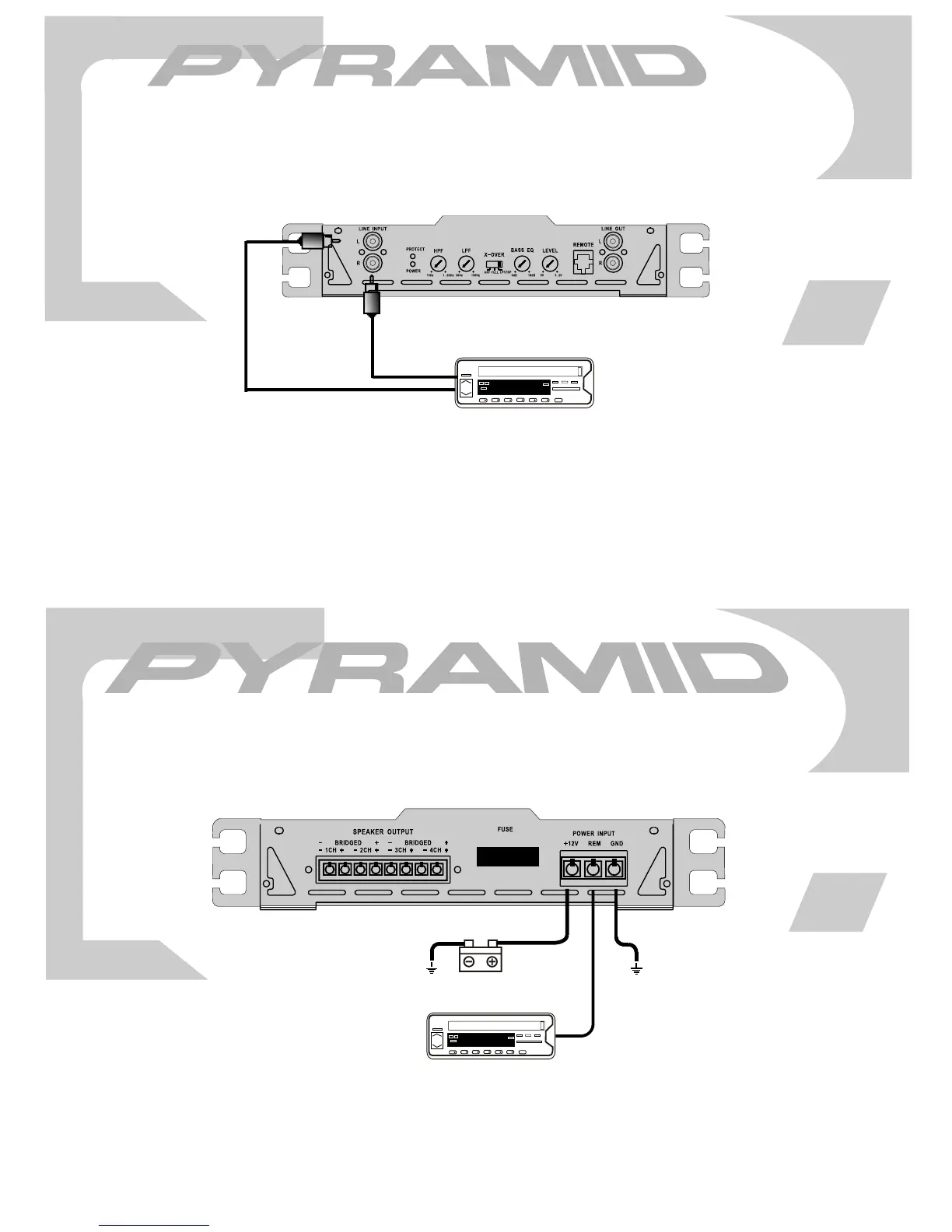 Pyramid PB1644X - Pyramid Stereo Input Connections; PB744 2-Channel Stereo Input; Pyramid Electrical Connections; PB1644 4-Channel Electrical Connections