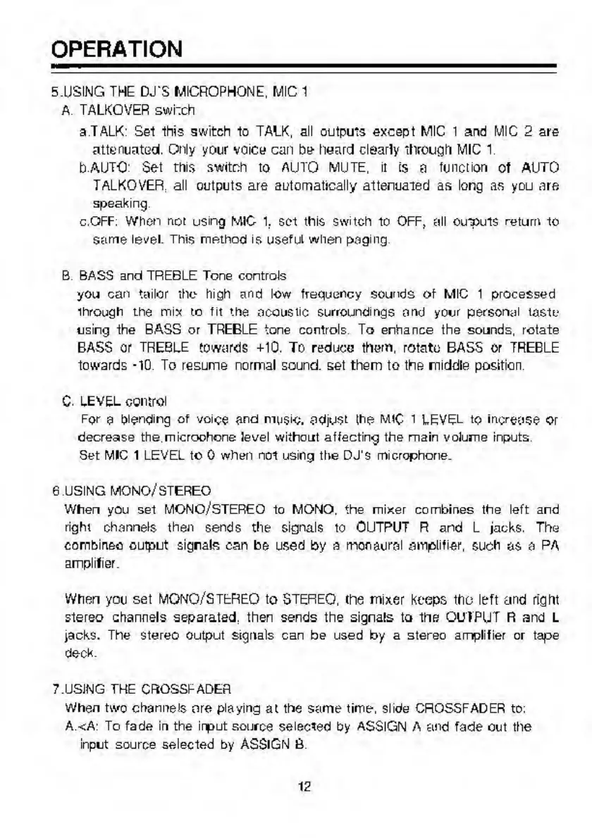 Pyramid PM-7501 - Microphone and Output Mode Operations