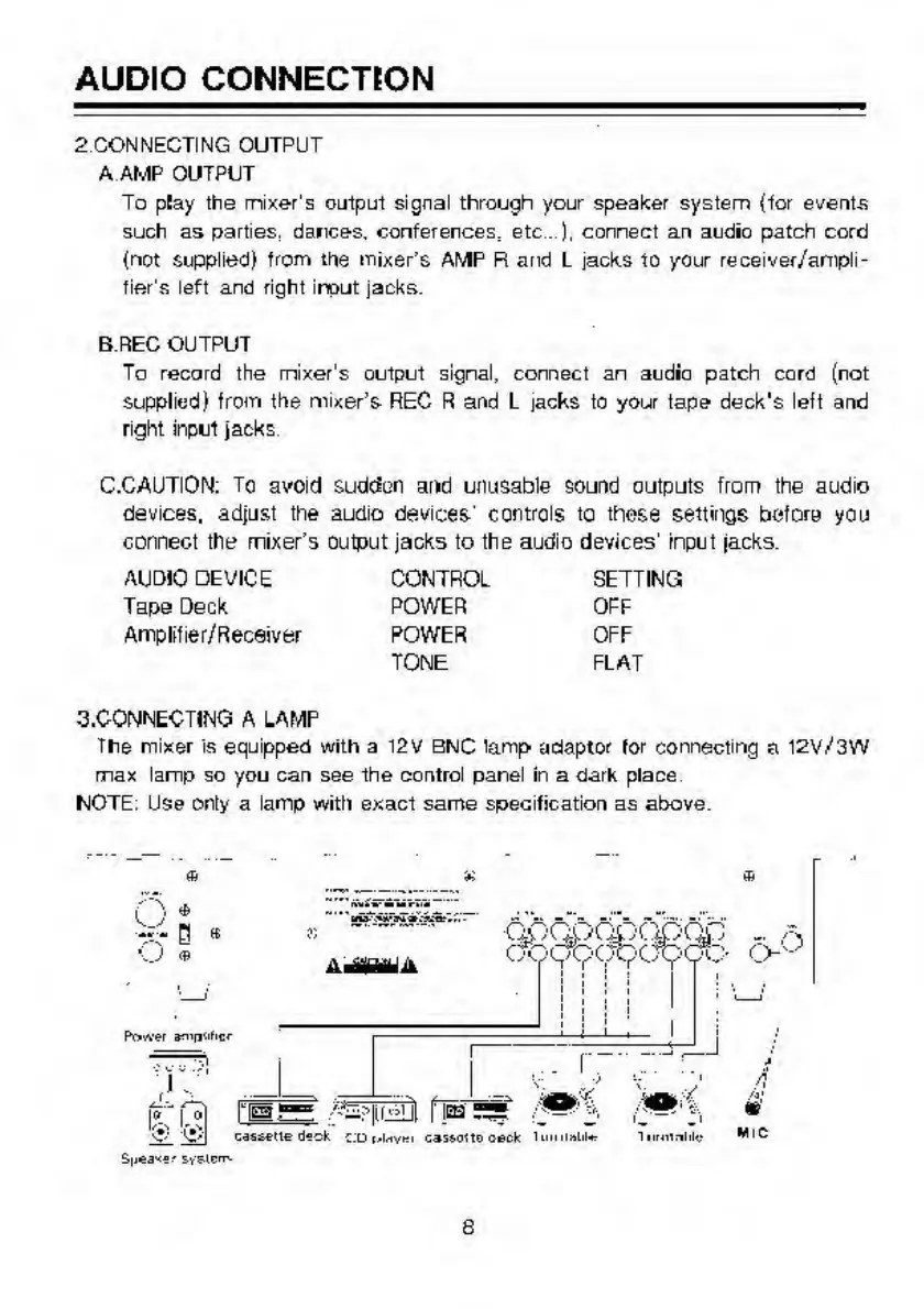 Pyramid PM-7501 - Output and Lamp Connections
