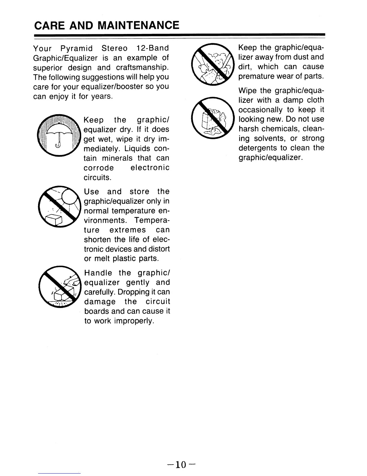 Pyramid PM8600 - Care and Maintenance Details; Keeping the Equalizer in Good Condition; Cleaning and Environmental Protection