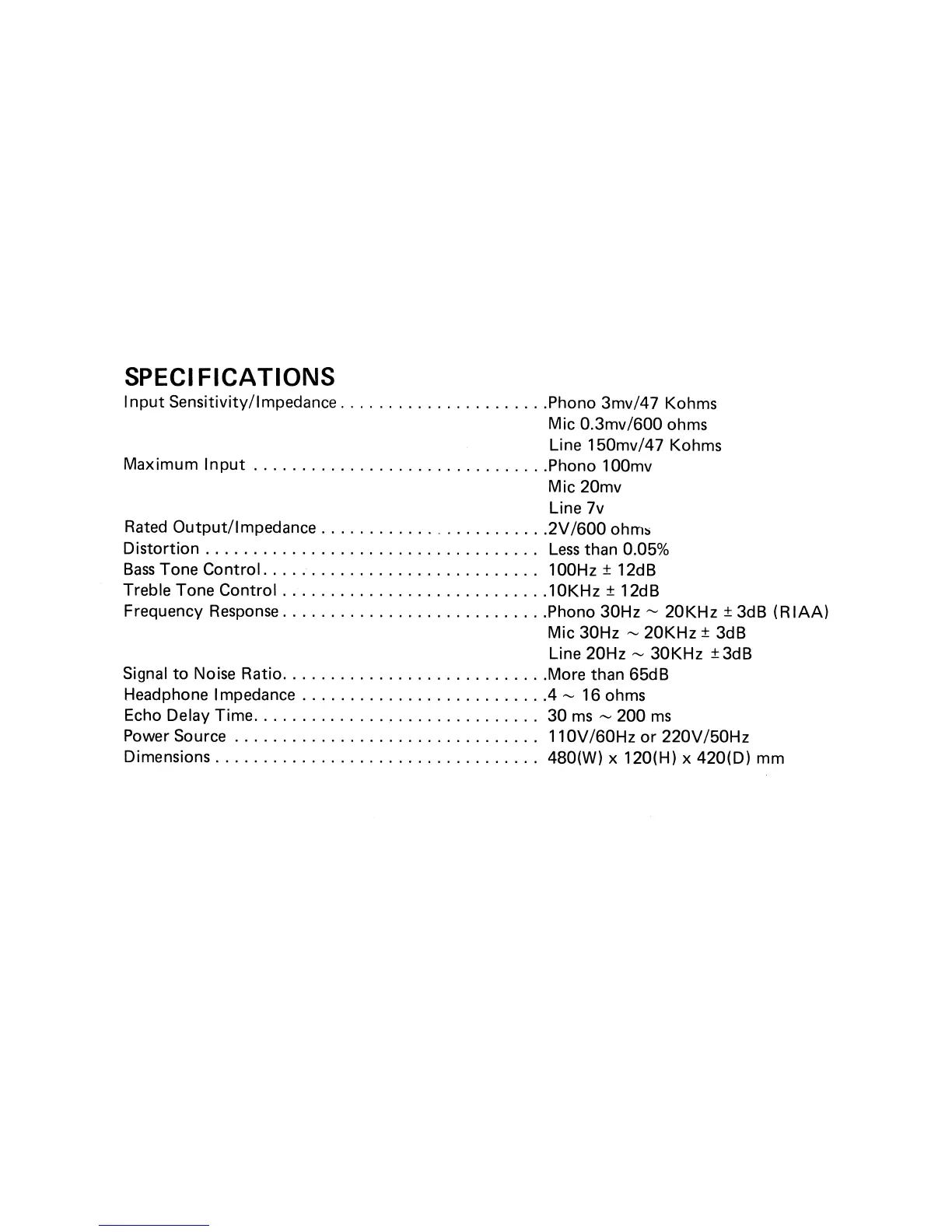 Pyramid PR-8800ECHO - Technical Specifications