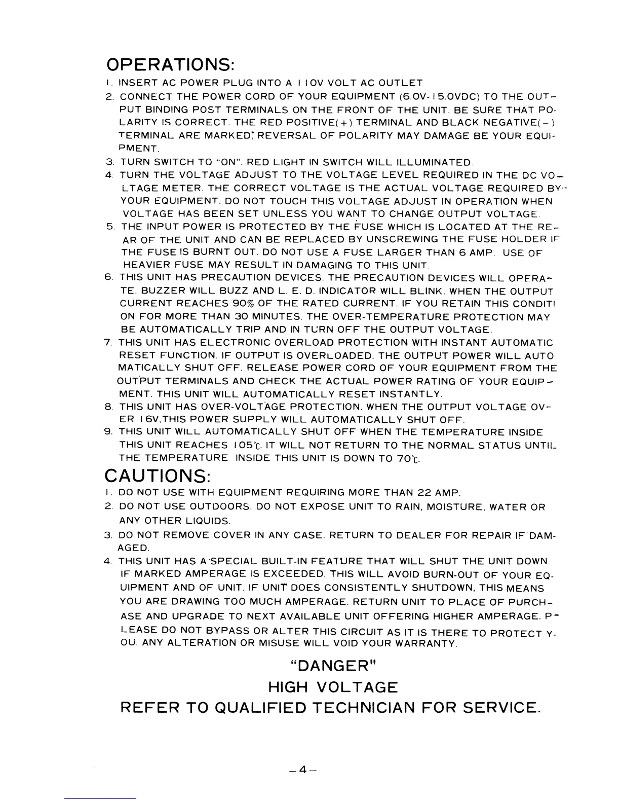 Pyramid PS-26KX - Operations; How to Use the Power Supply; Cautions; Safety and Usage Warnings
