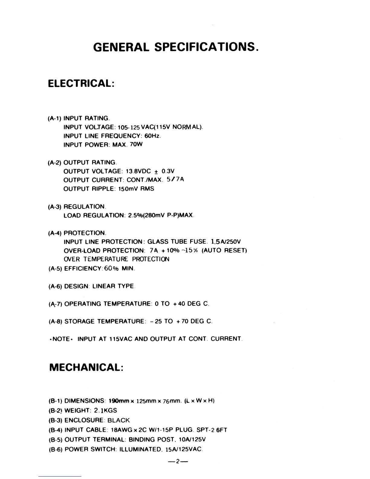 Pyramid PS-9KX - General Specification; Electrical Specifications; Mechanical Specifications