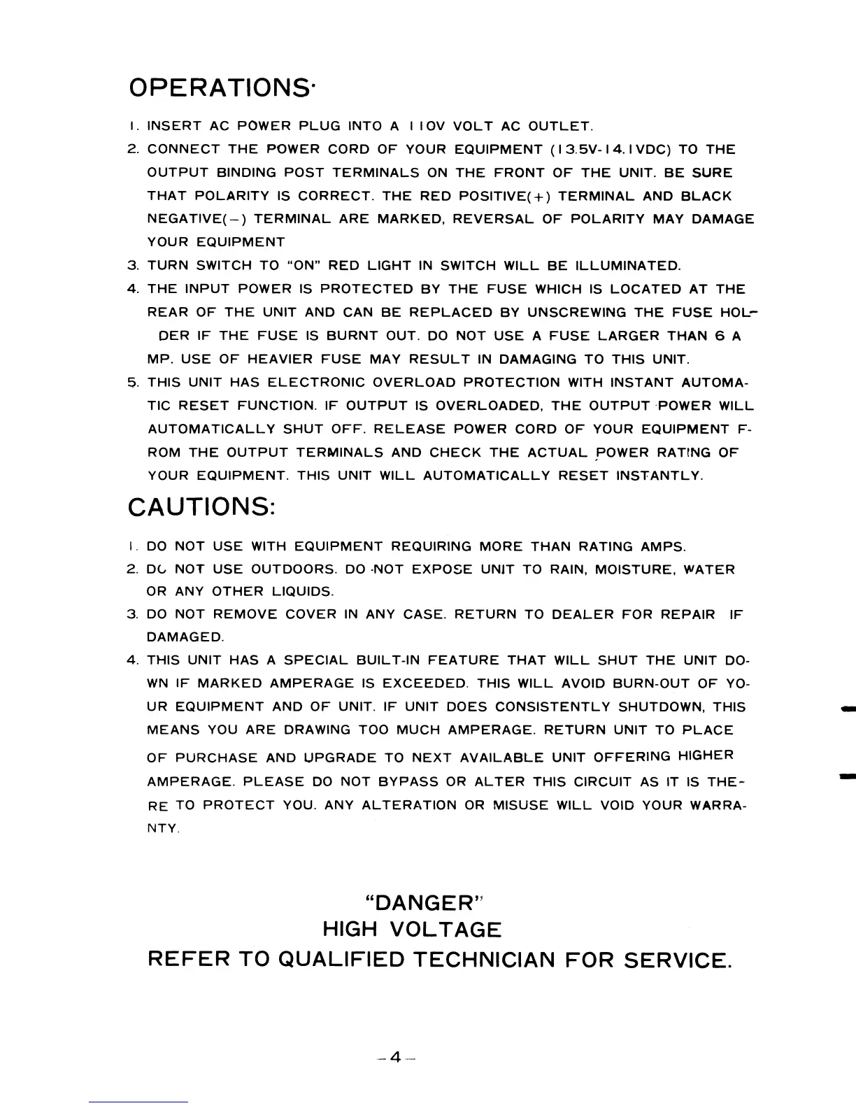 Pyramid PS21KX - Operations and Cautions; Operations; Cautions