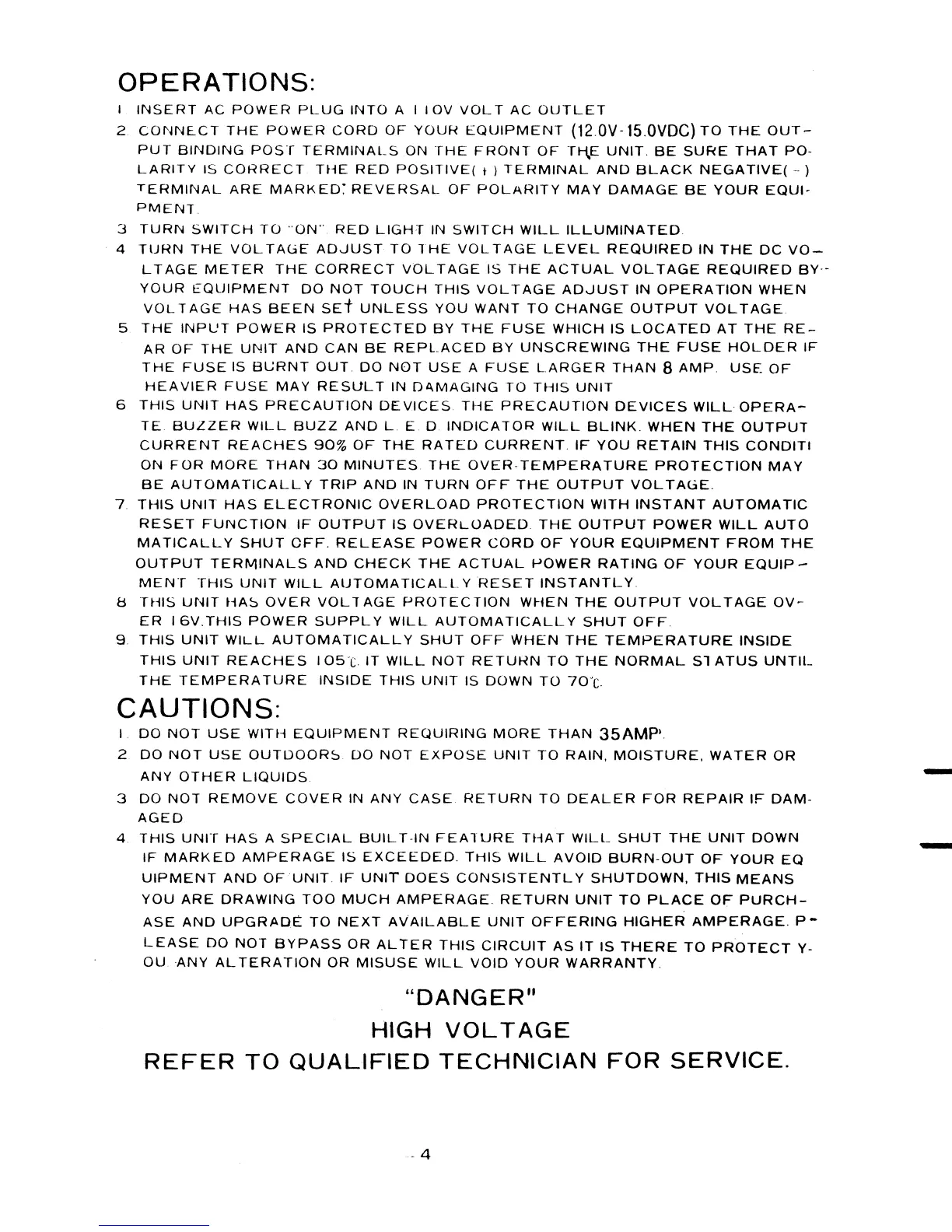 Pyramid PS36KX - Operation and Cautions; Operating Instructions; Safety Cautions