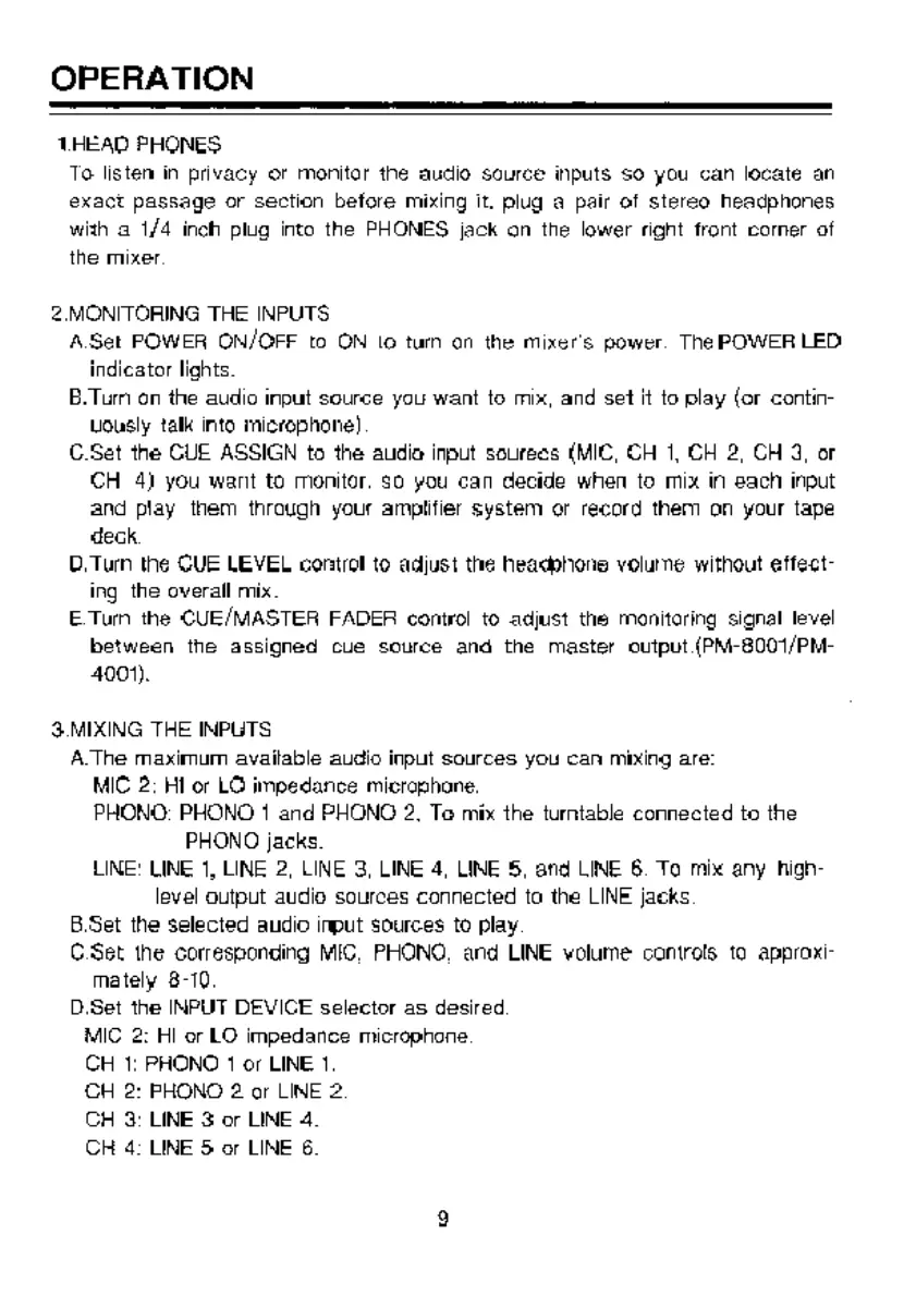 Pyramid Studio Pro PM-8501 - Operation; Mixing the Inputs