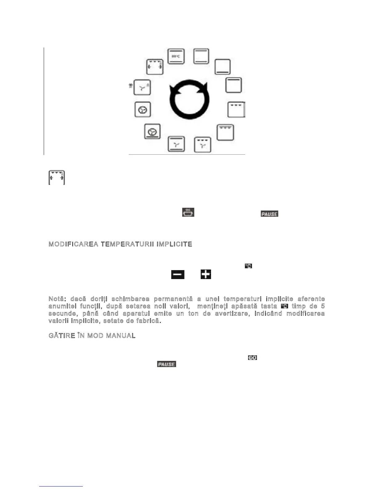 Temperatura implicită a funcţiilor se pot schimba prin apăsarea tastei . Valoarea temperaturii se