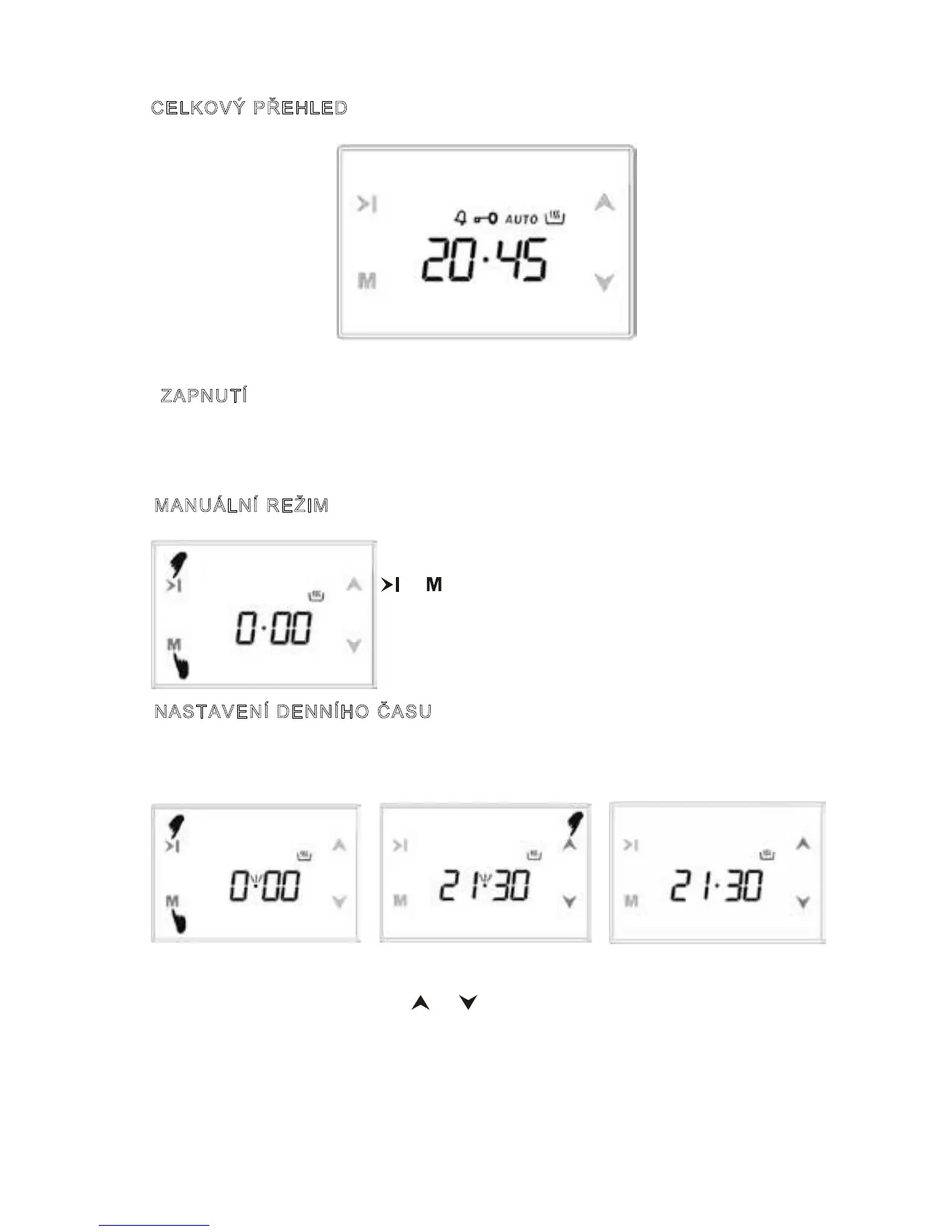 manuálního režimu stisknutím tlačítka M a nastavte denní dobu pomocí tlačítek se šipkami