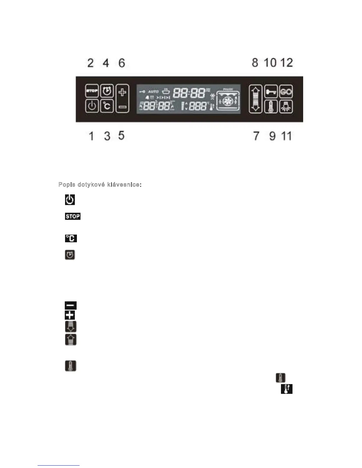 3. - Tlačítko pro nastavování teploty;