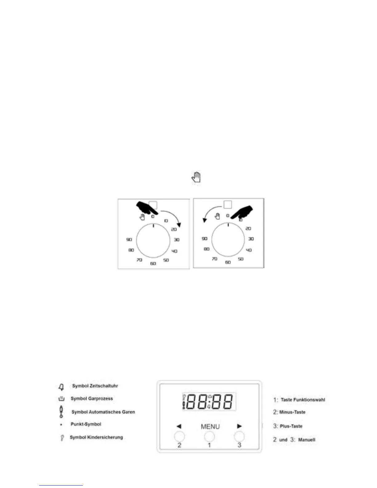 ZeitschaltuhrentgegendemUhrzeigersinnaufdas Zeichen.UmdenGarvorgangimmanuellen