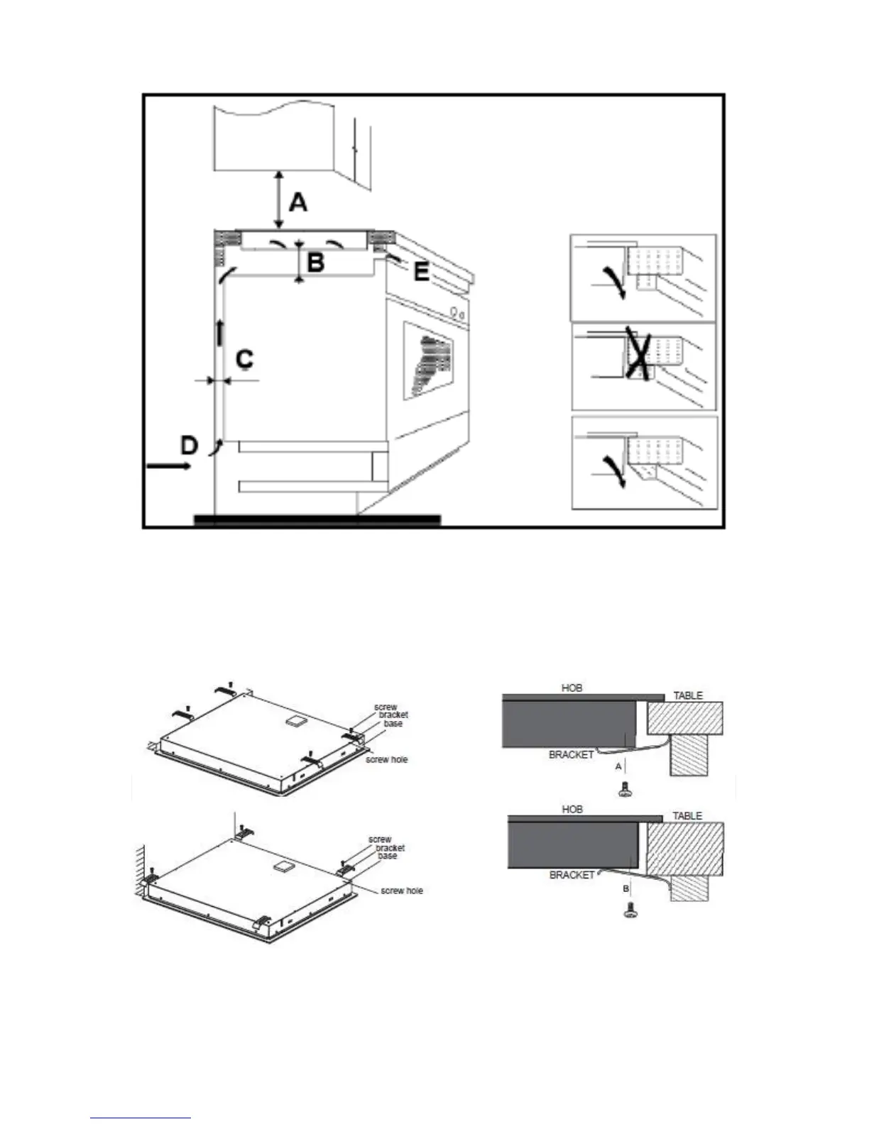 Attach the hob to the worktop bottom using the four brackets and screws provided.