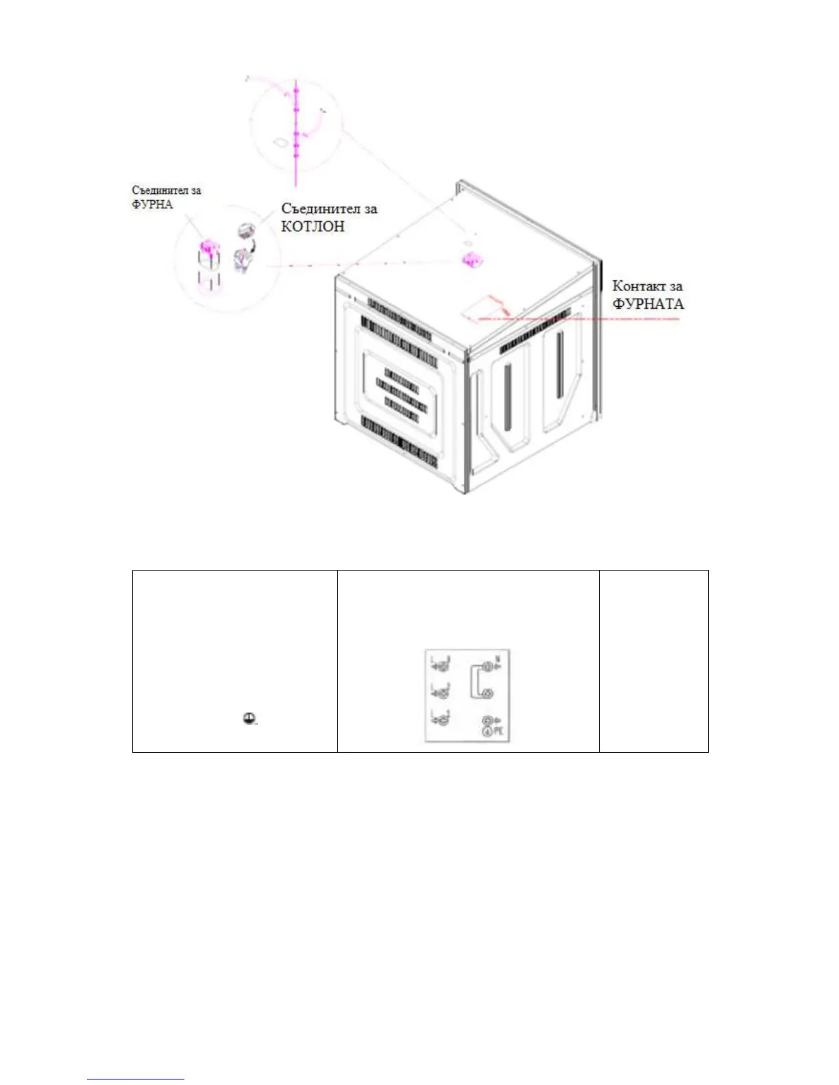 уреда до клемната кутия на фурната.