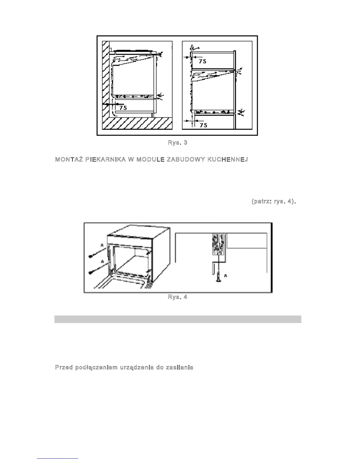 ❖ Piekarnik należy wstawić do zabudowy na wybranym poziomie: pod blatem lub na