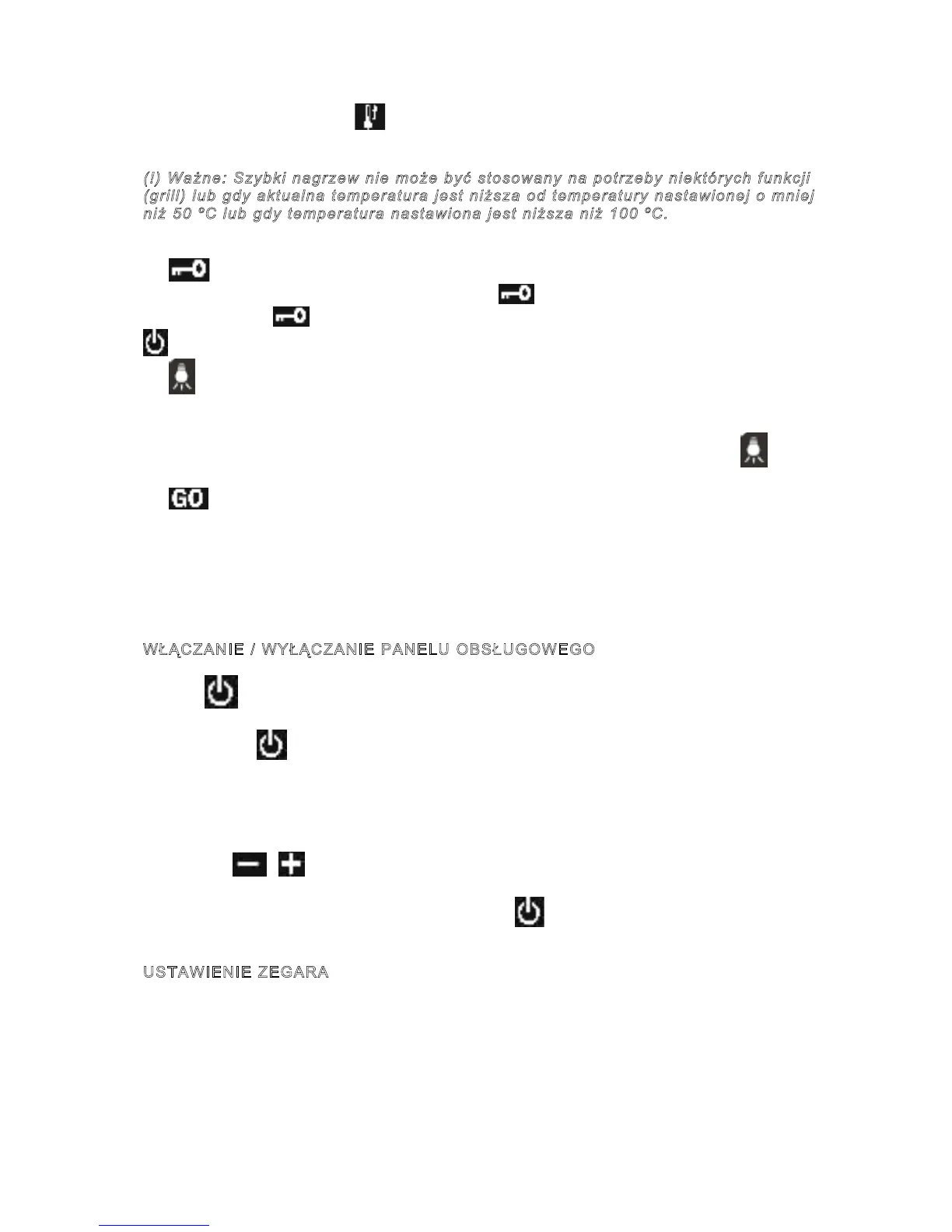 rozgrzania piekarnika. Symbol wyświetlony jest na wyświetlaczu podczas szybkiego