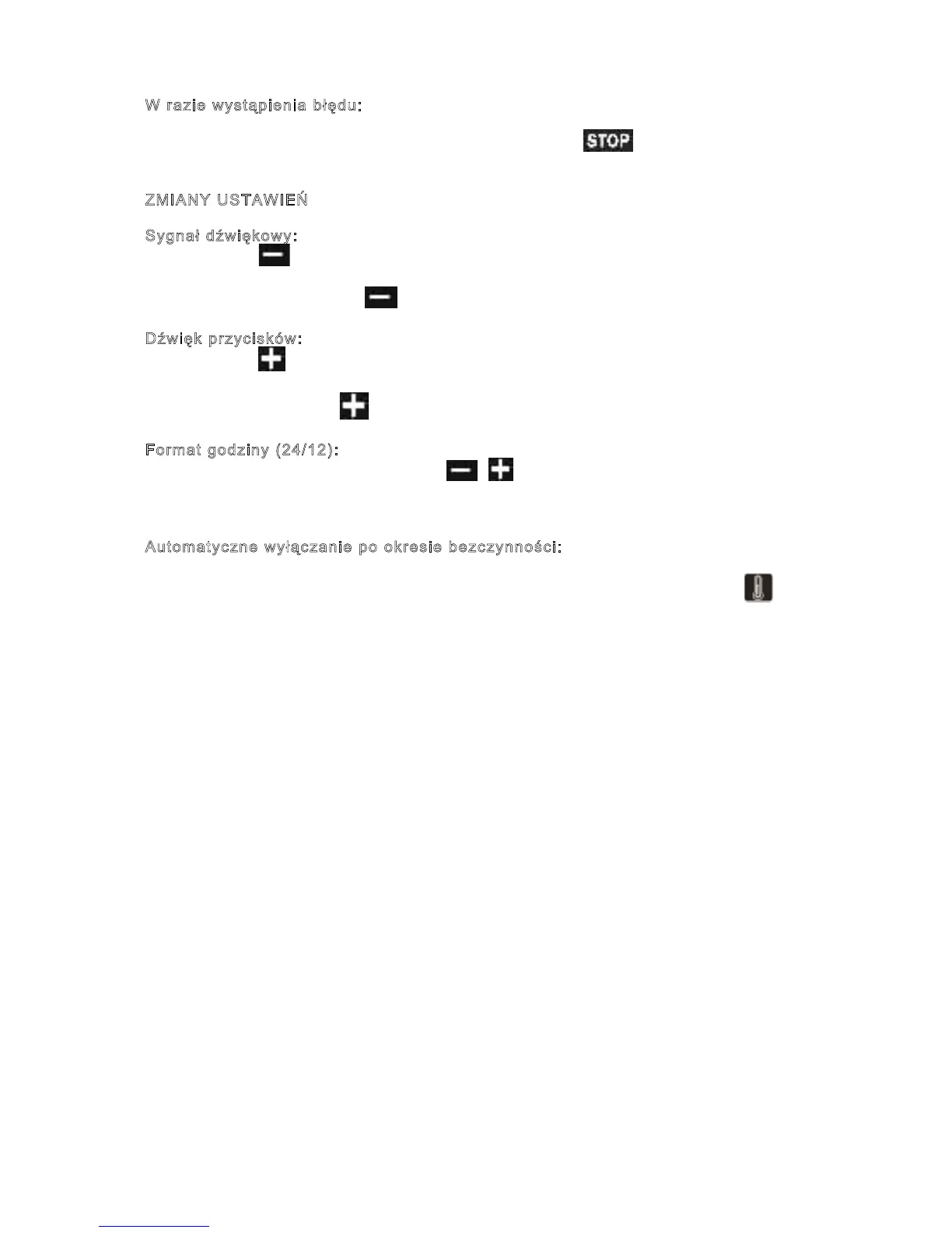 sekund w trybie bezczynności (gdy żadna funkcja związana z pieczeniem nie jest aktywna), by