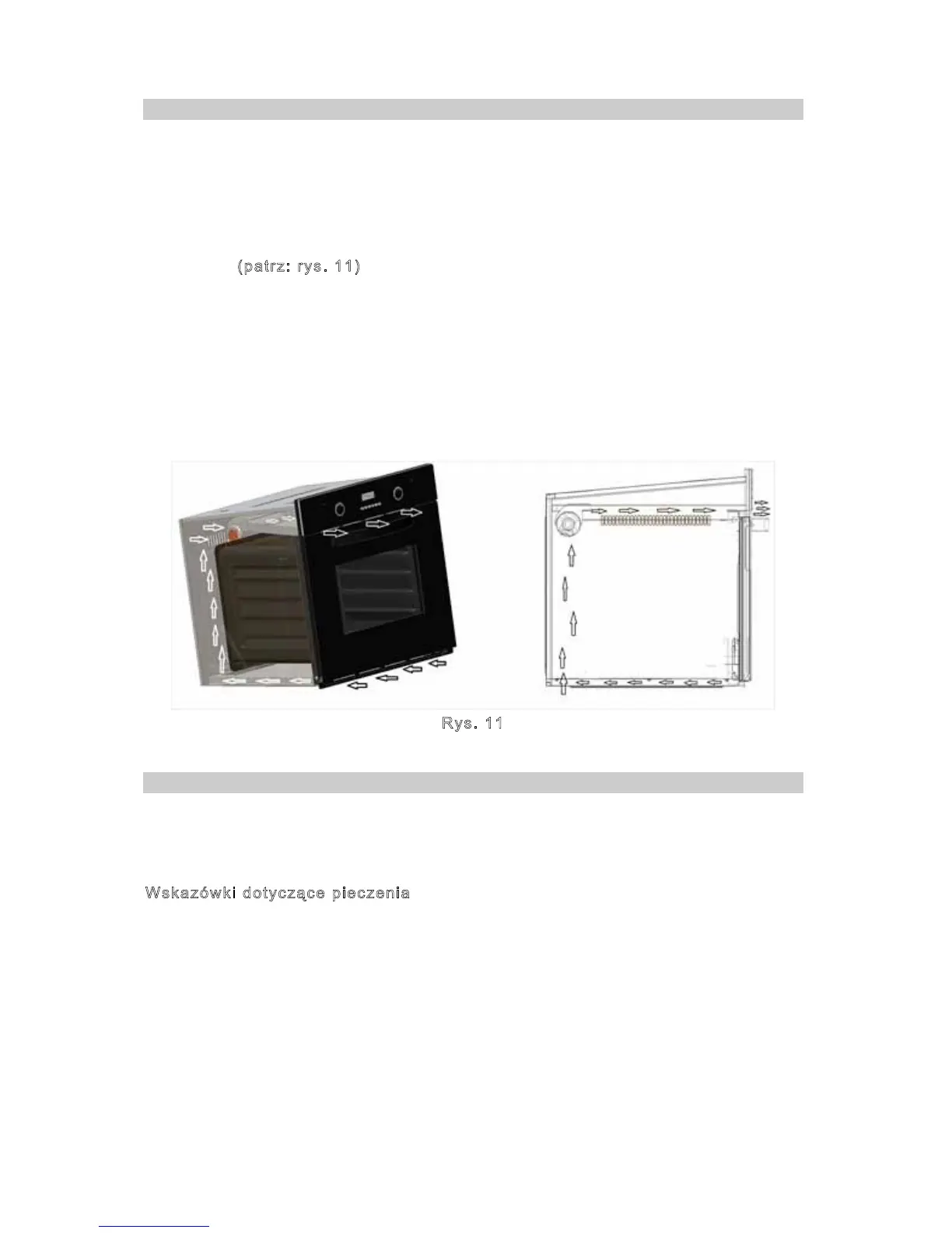 • Zalecane jest ustawianie naczyń zawierających pieczone potrawy na środku