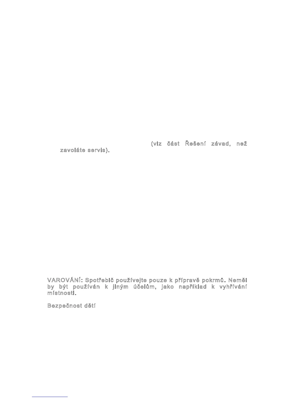AROVÁNÍ: Spotřebič používejte pouze k přípravě pokrmů. Neměl