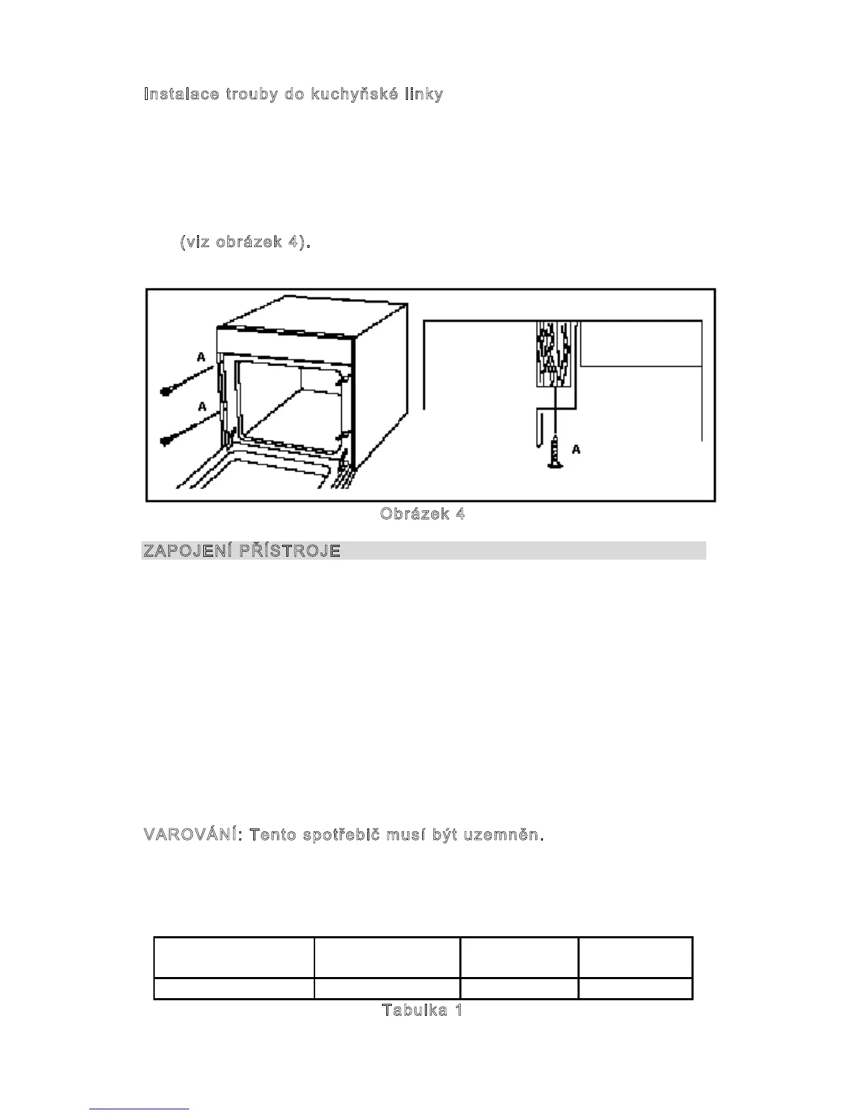 Pokud Vaše trouba nemá přívodní kabel, musíte požádat kvalifikovaného